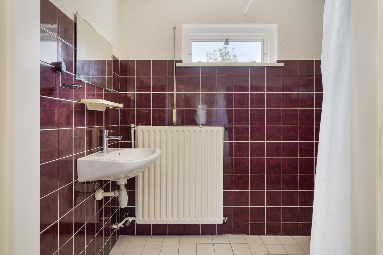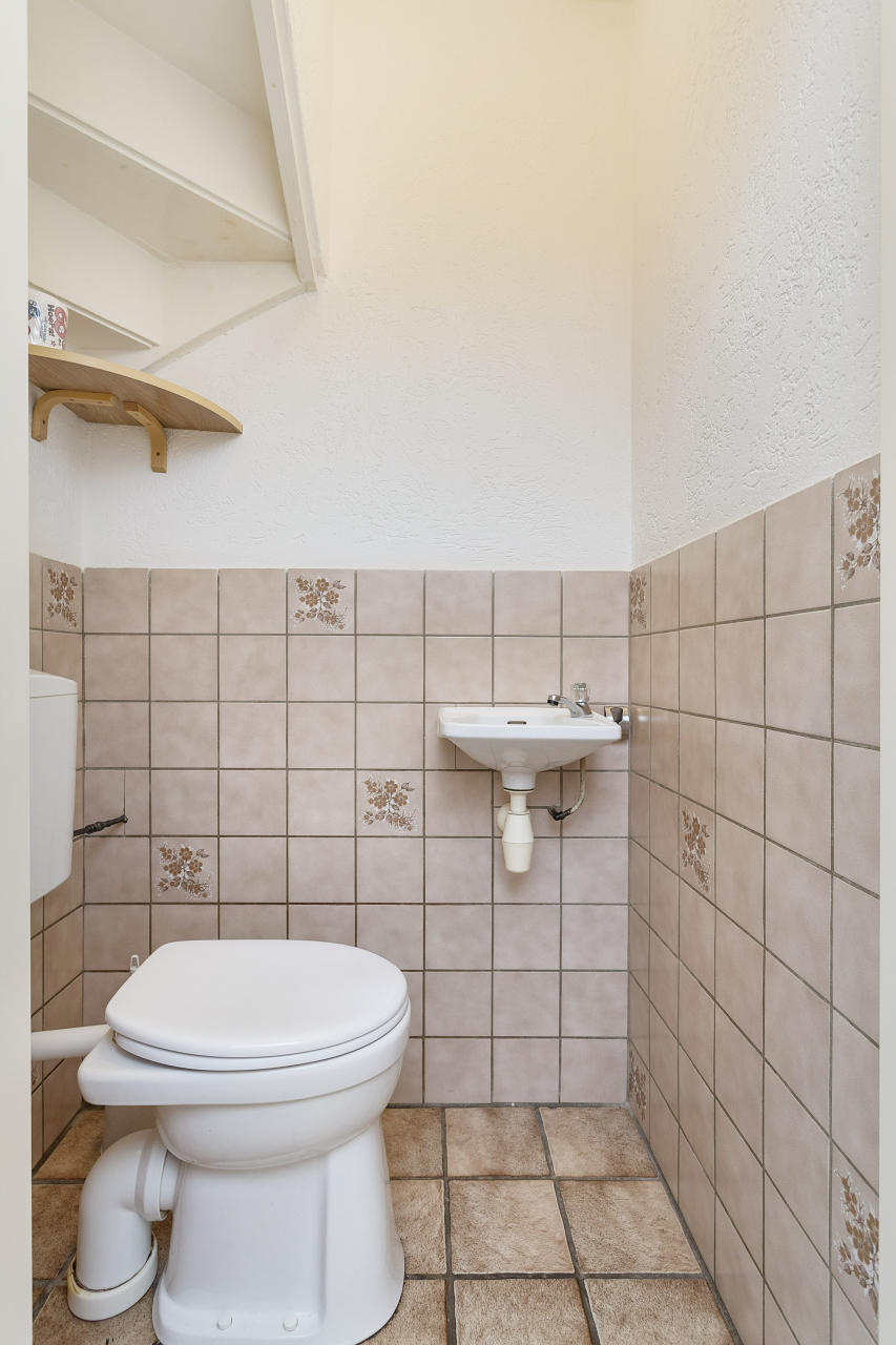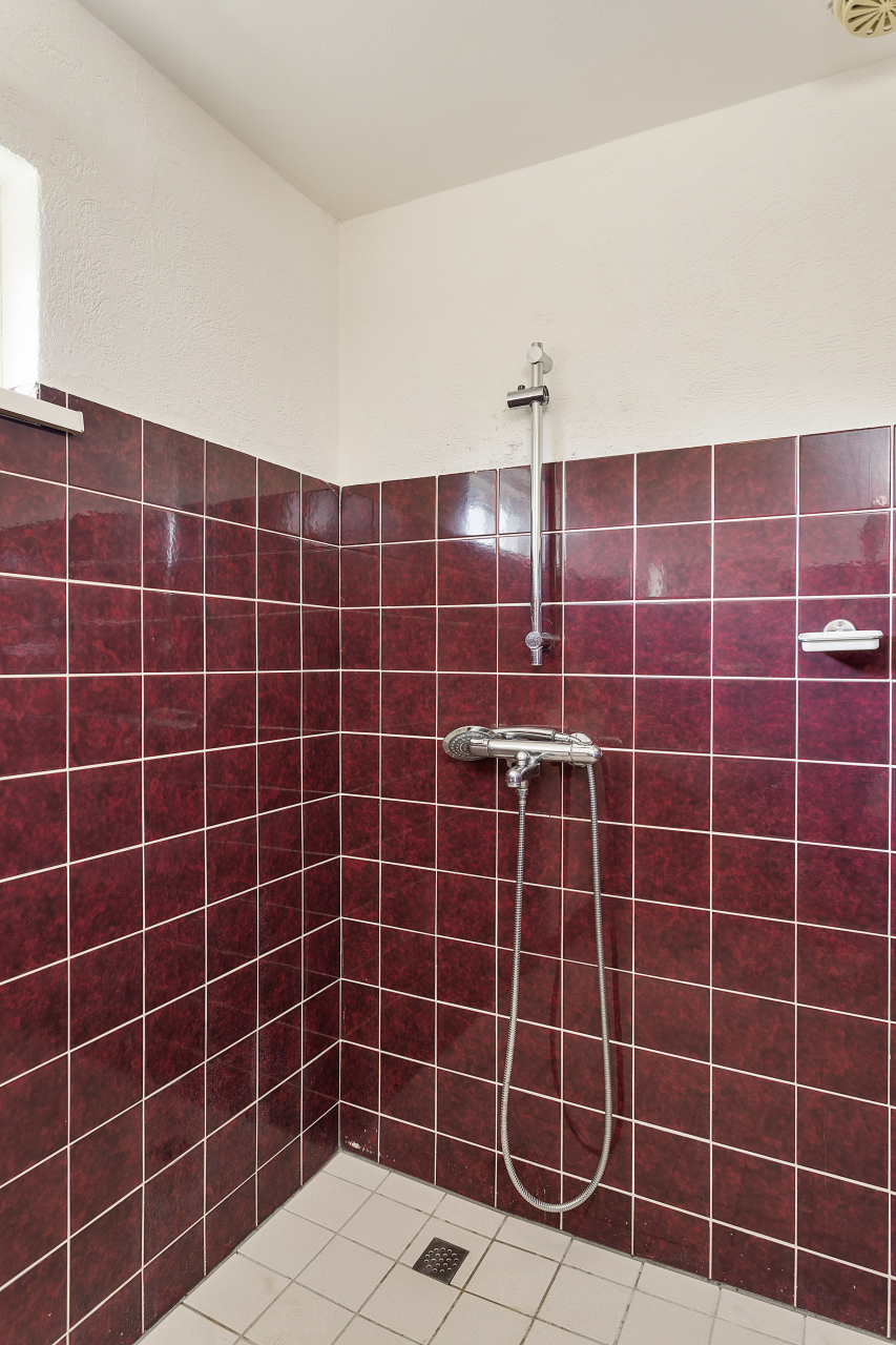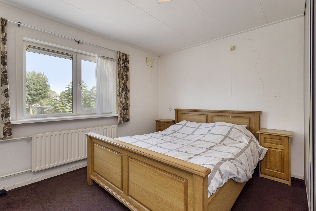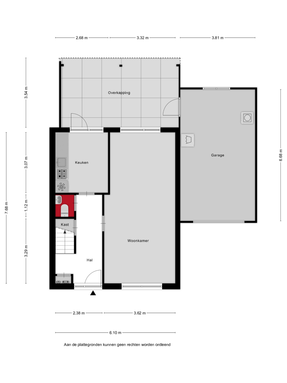 De aangebouwde garage heeft aan de voorzijde een kantel deur en aan de achterzijde een dubbel raam en een tuindeur. Tevens bevinden zich hier de witgoedaansluitingen.