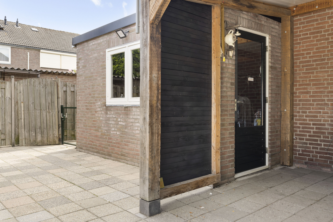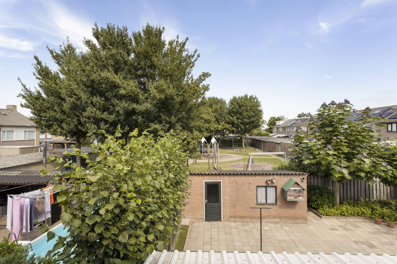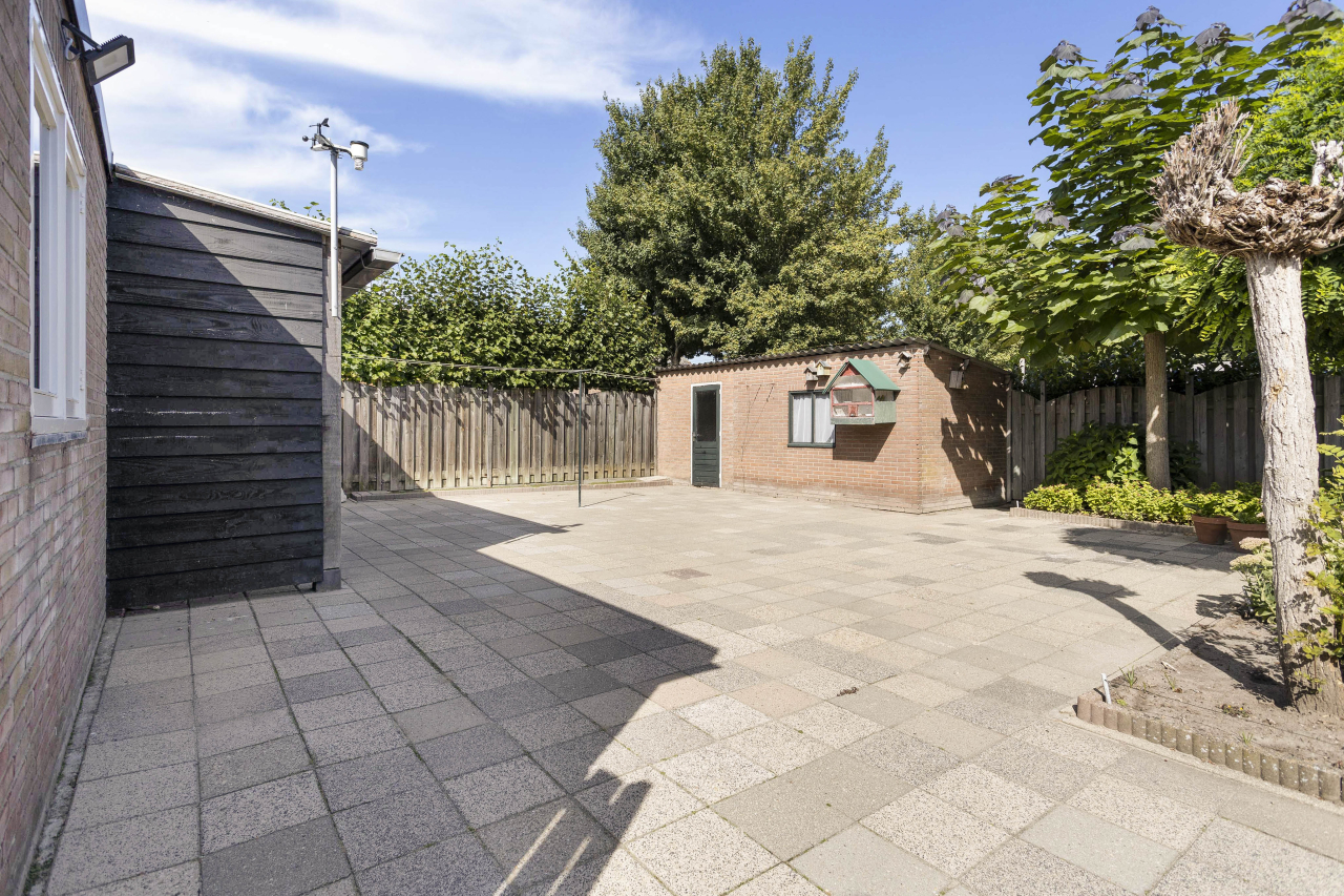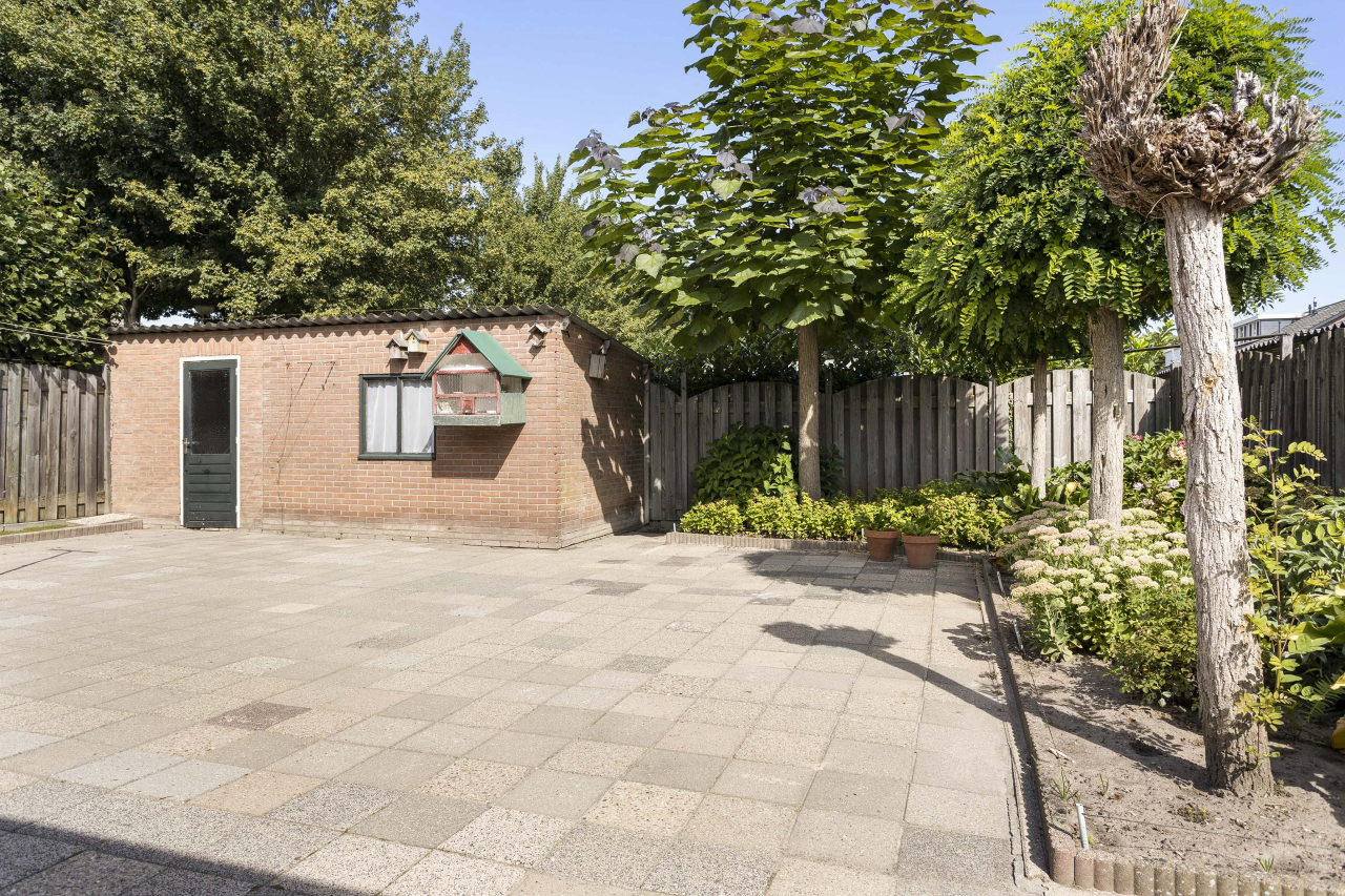 Achter de woning ligt een diepe tuin met achterom die grotendeels bestraat is en voorzien van enkele borders met bomen en beplanting. Er is tevens een fijne overkapping. Door de diepte van de tuin is er altijd een zonnig plekje te vinden. Achterin de tuin staat een ruime berging met dubbel raam en tuindeur. Kortom een fijne gezinswoning! Komt u kijken?