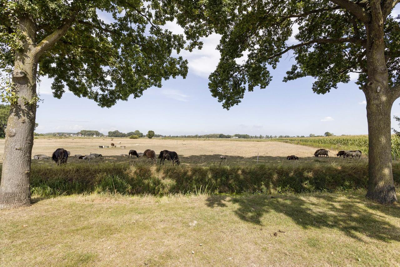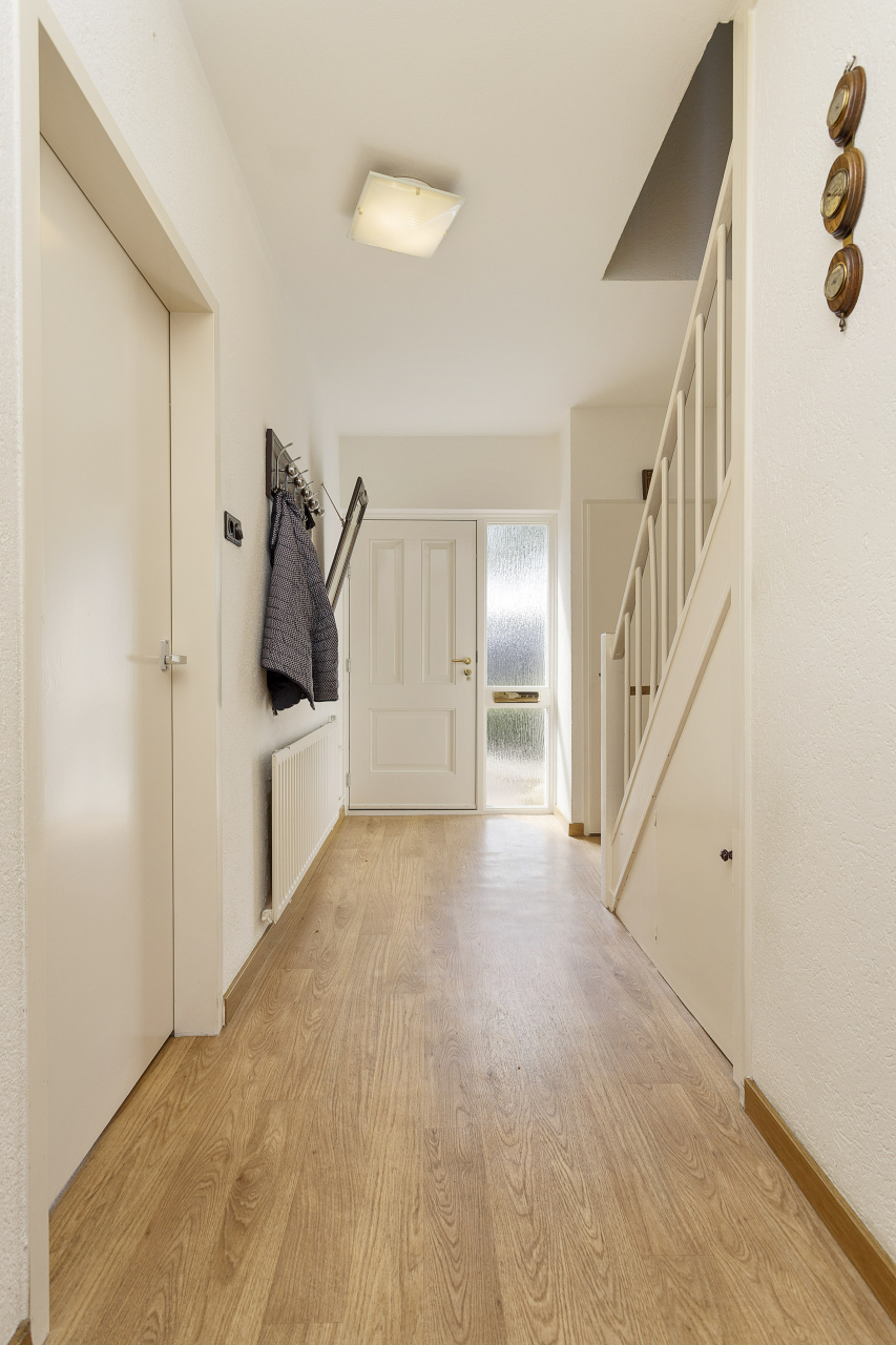 De entree is aan de voorzijde van de woning met een fraaie voordeur met rolluik. De naast gelegen garage, is toegankelijk aan de voorzijde via een kanteldeur en aan de achterzijde via een tuindeur.