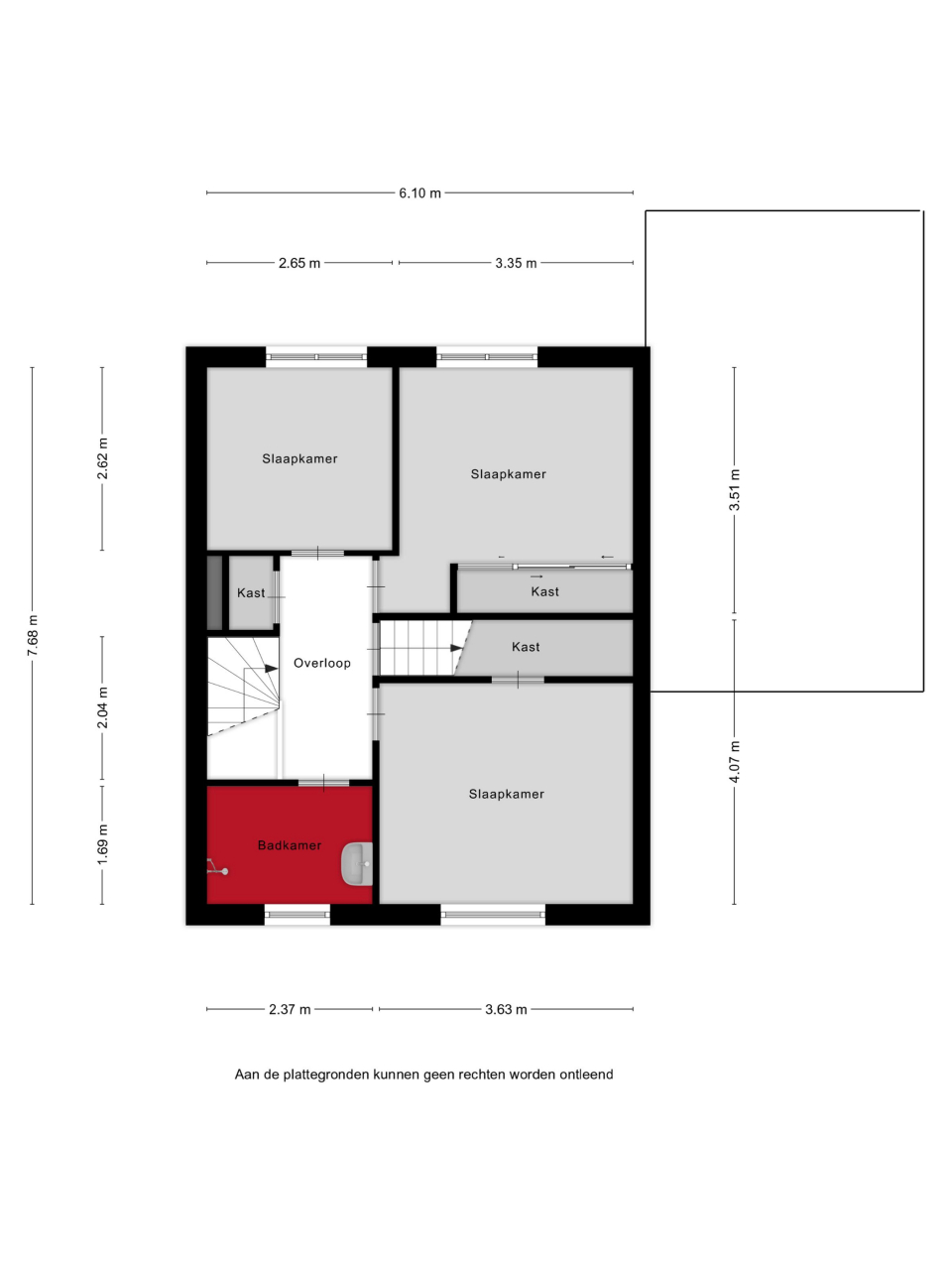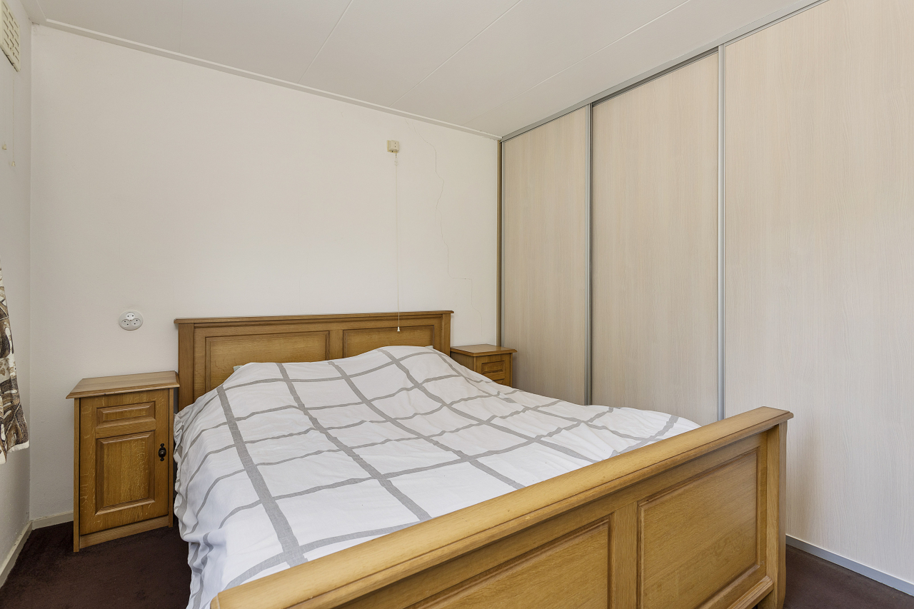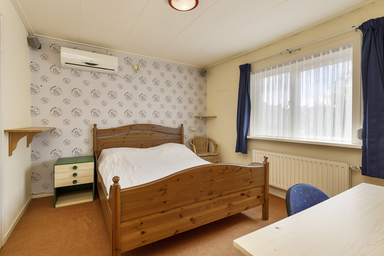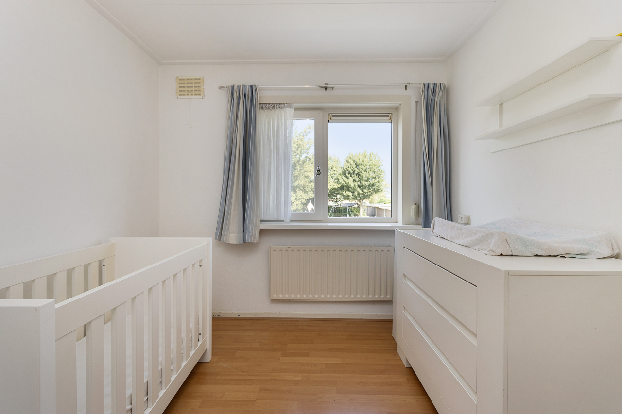 Op de eerste verdieping liggen 3 slaapkamers en de badkamer. Aan de achterzijde 2 slaapkamers en 1 aan de voorzijde. De ouderslaapkamer met kastenwand met schuifdeuren ligt aan de achterzijde is voorzien van vloerbedekking en een dubbelraam met rolluik. De 2e slaapkamer aan de achterzijde is op dit moment in gebruik als kinderkamer en heeft een laminaatvloer en dubbel raam met hor en rolluik. De voorste slaapkamer is voorzien van vloerbedekking, een ruime trapkast, dubbel raam met rolluik en een comfortabele airco.De ruime, eenvoudige badkamer aan de voorzijde is voorzien van een wastafel, radiator en douche. Het smalle, kunststof raam heeft ook een rolluik aan de buitenzijde . Op de overloop van de 1e verdieping is een grote inbouwkast en via een deur en vaste trap is de zolderverdieping bereikbaar.