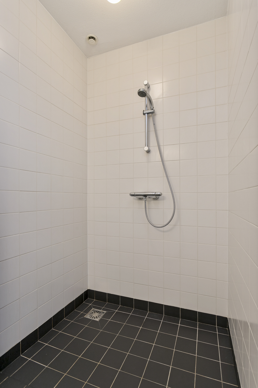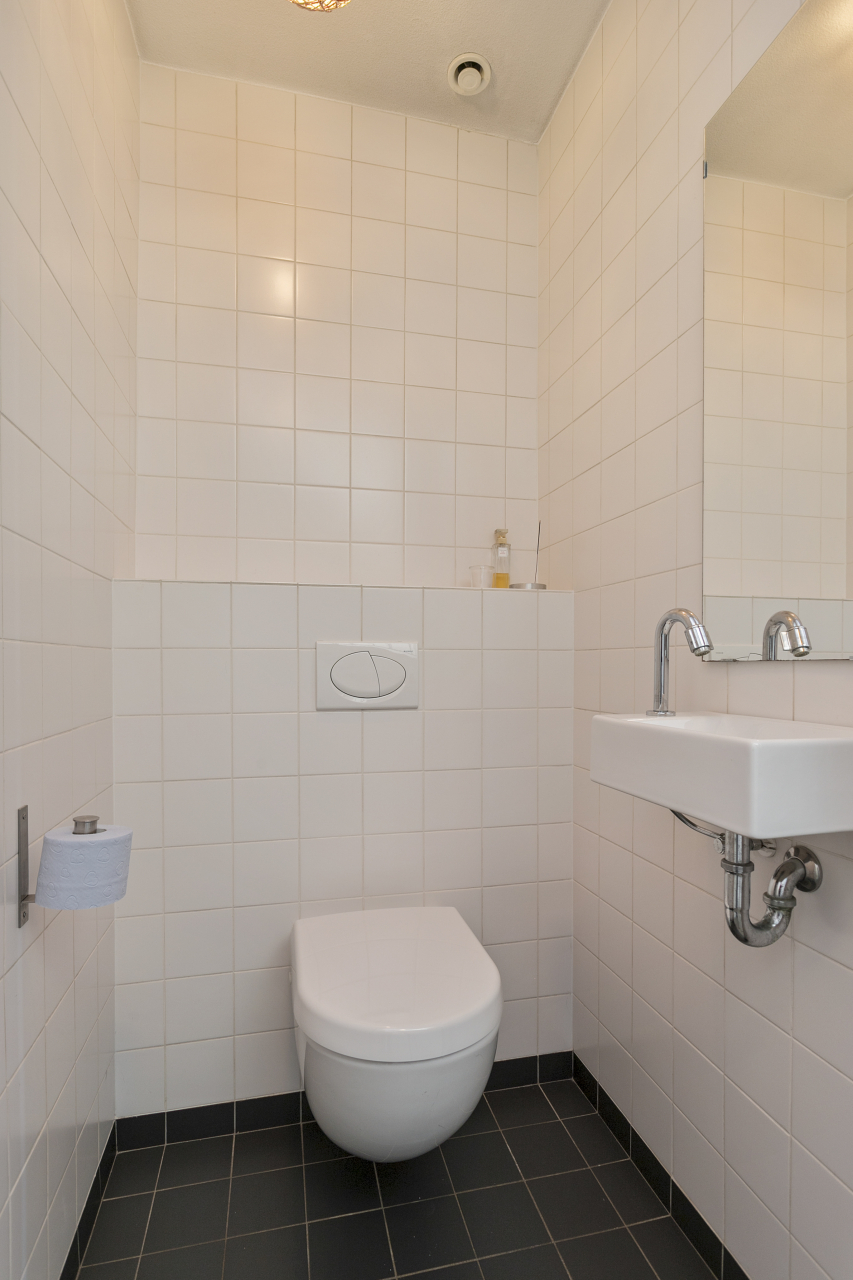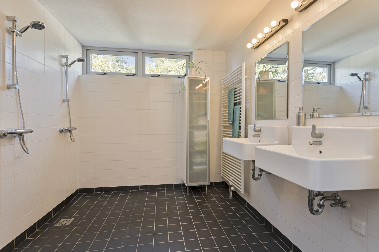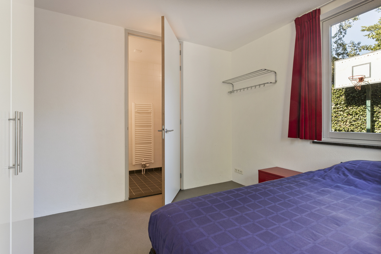 Tevens ligt aan de achterzijde op de begane grond een ruime ouderslaapkamer met aansluitend een lichte badkamer met inloopdouche, wastafel en designradiator.