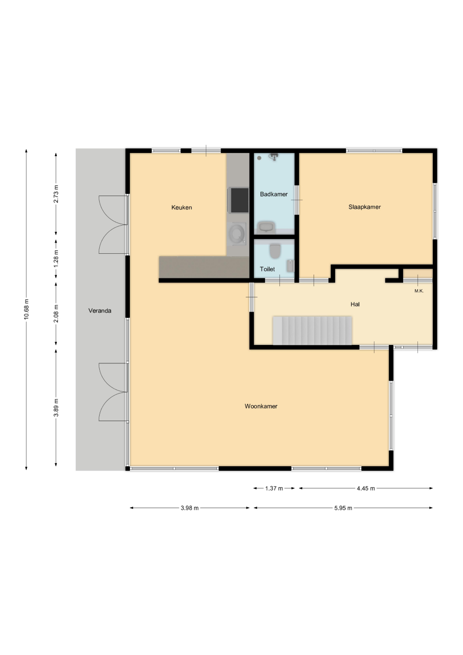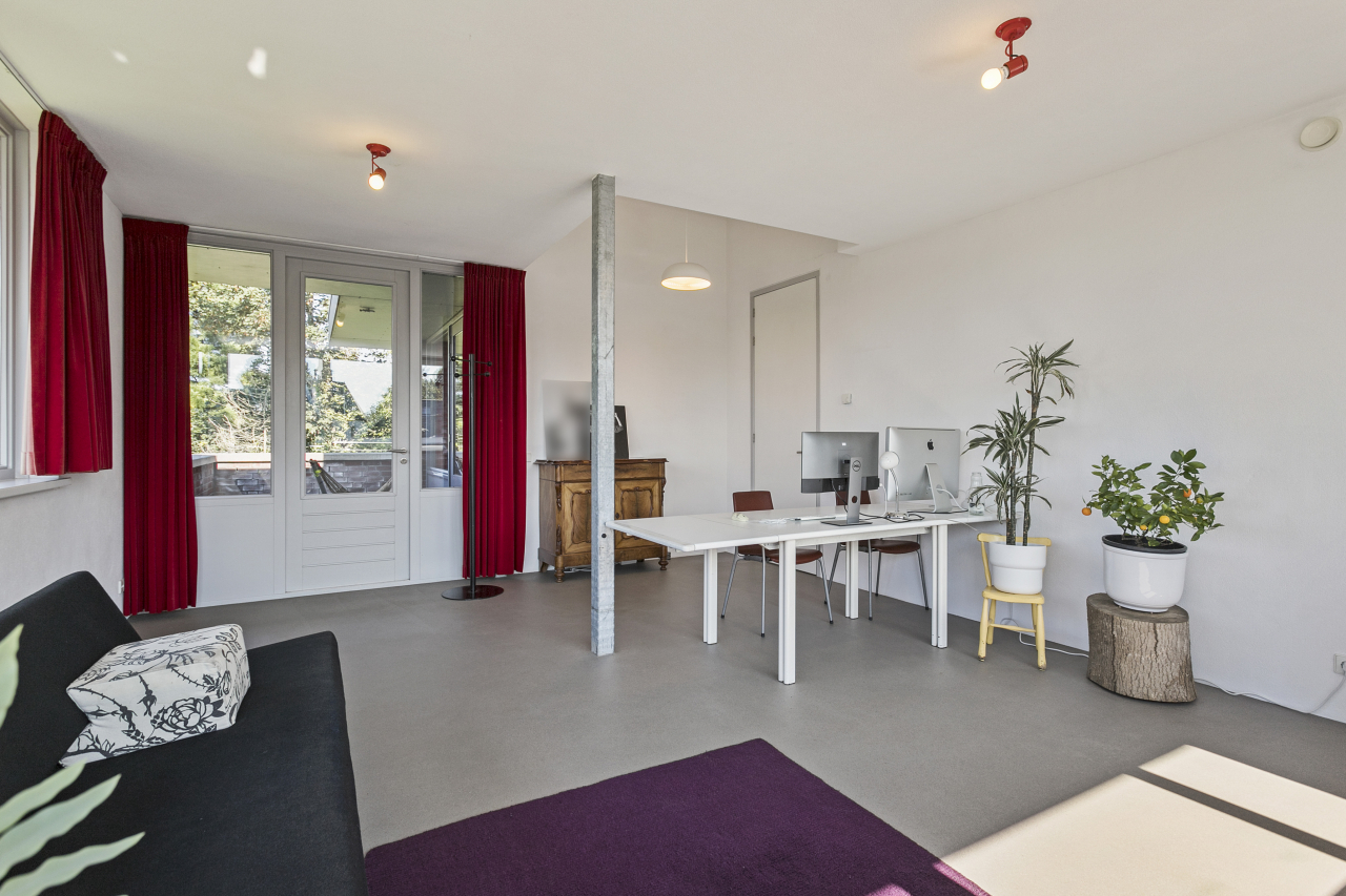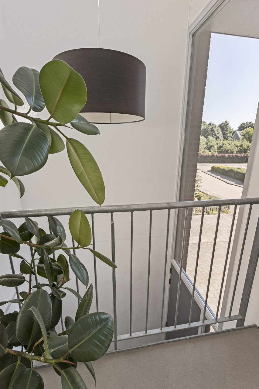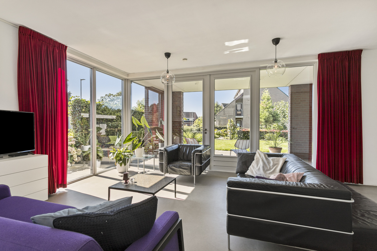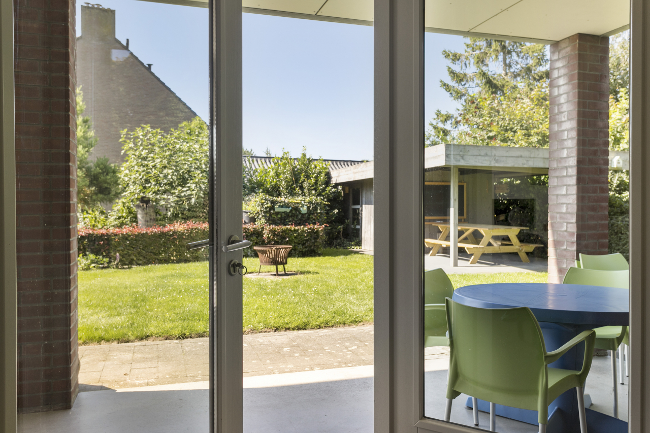 Bij de zithoek zijn kamerhoge ramen en openslaande deuren naar de veranda en tuin. Aansluitend ligt aan de achterzijde de halfopen woonkeuken. Deze keuken in L- opstelling is voorzien van diverse keukenkasten en inbouwapparatuur, openslaande deuren en een raam en deur aan de achterzijde. Er is voldoende ruimte voor een gezellige, grote eettafel. De openslaande deuren in de keuken geven ook toegang tot de veranda waar het heerlijk toeven is met zicht op de tuin.