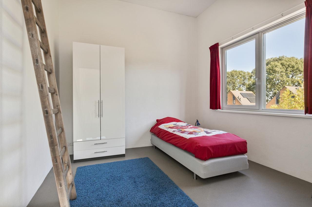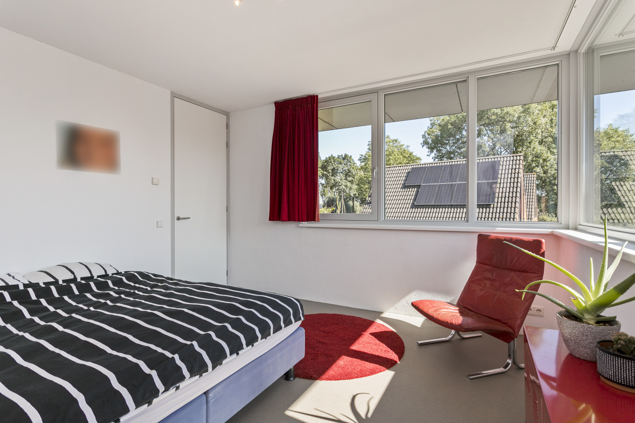 Slaapkamer 5, aan de voorzijde, kijkt uit op de voortuin en is voorzien van diverse ramen en een praktische inbouwkast.