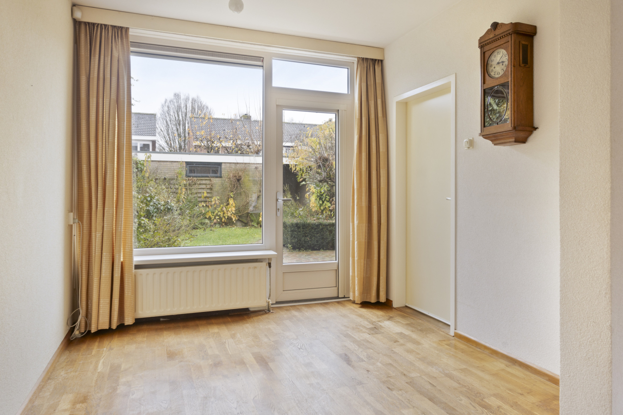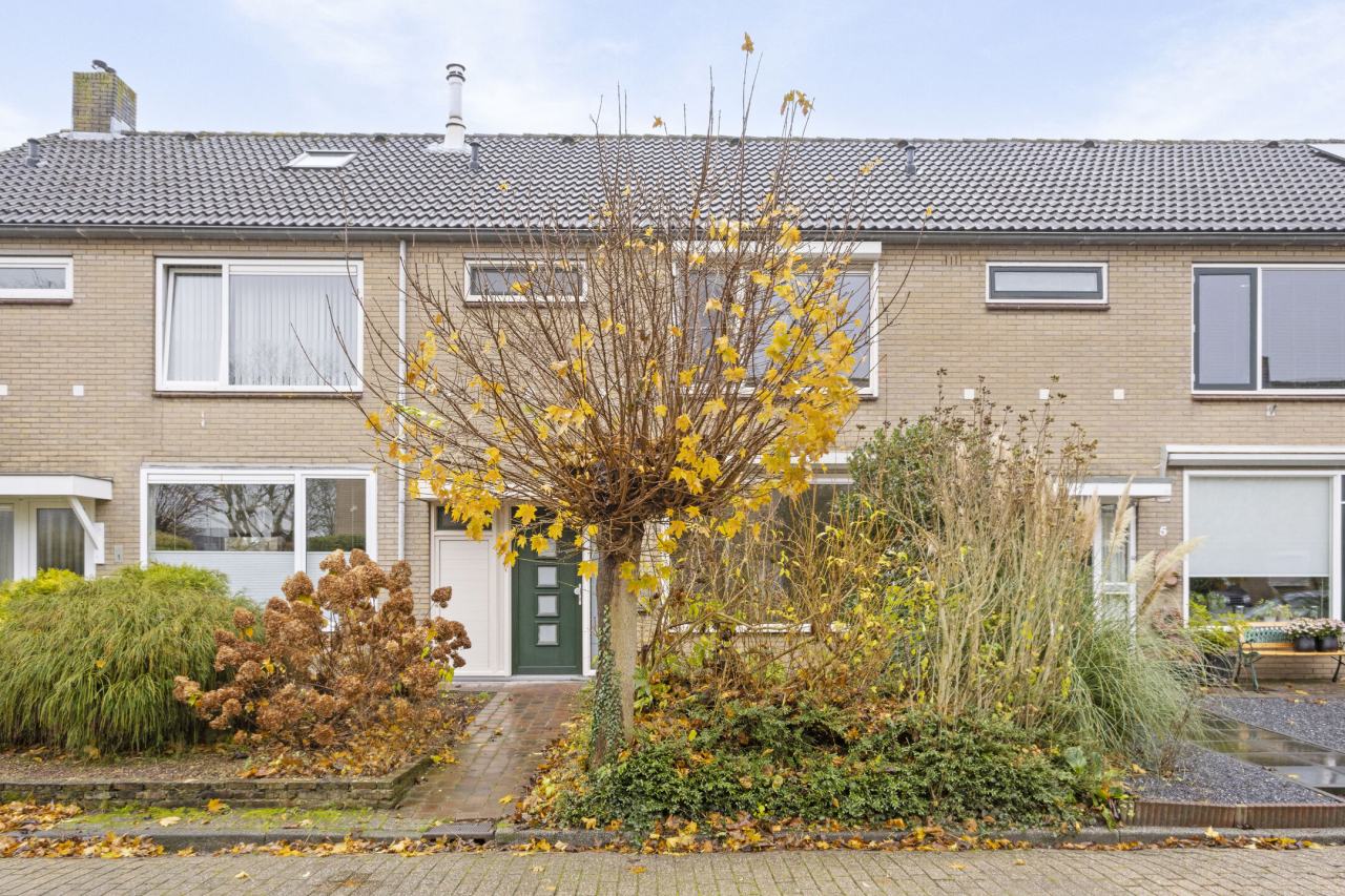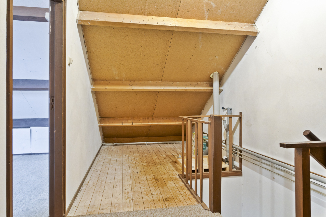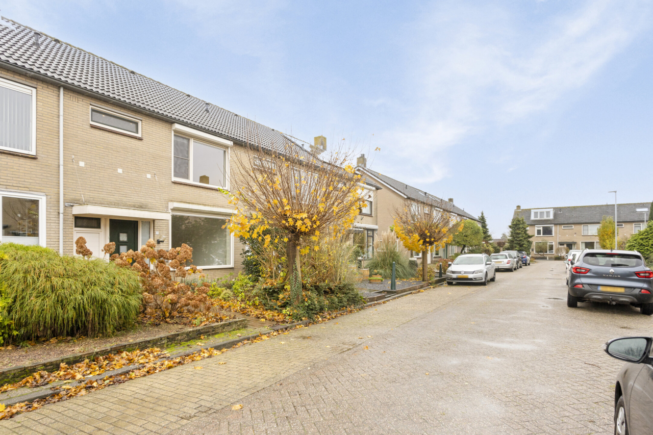 Via een vaste trap is de 2e verdieping bereikbaar met de 4e slaapkamer met groot Veluxraam met hor en bergruimte achter de knieschotten. Op de voorzolder is de witgoedaansluiting en hangt de Remeha CV HR ketel (2020). Achter de woning ligt een zonnige groene tuin met een groot terras direct achter de woning met sierbestrating. Verder borders met beplanting en struiken. Achterin de tuin staat een stenen berging en is een achterom.