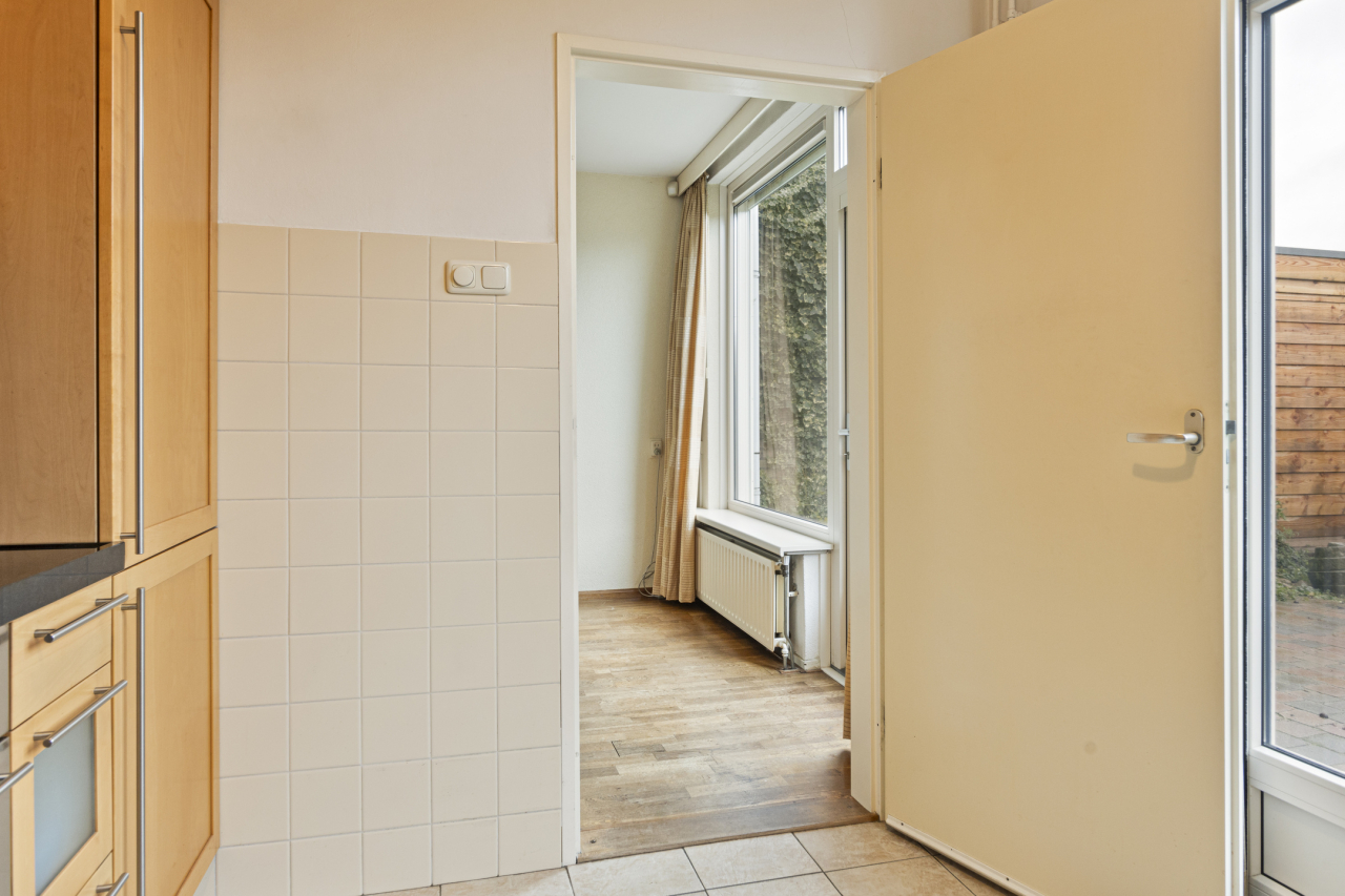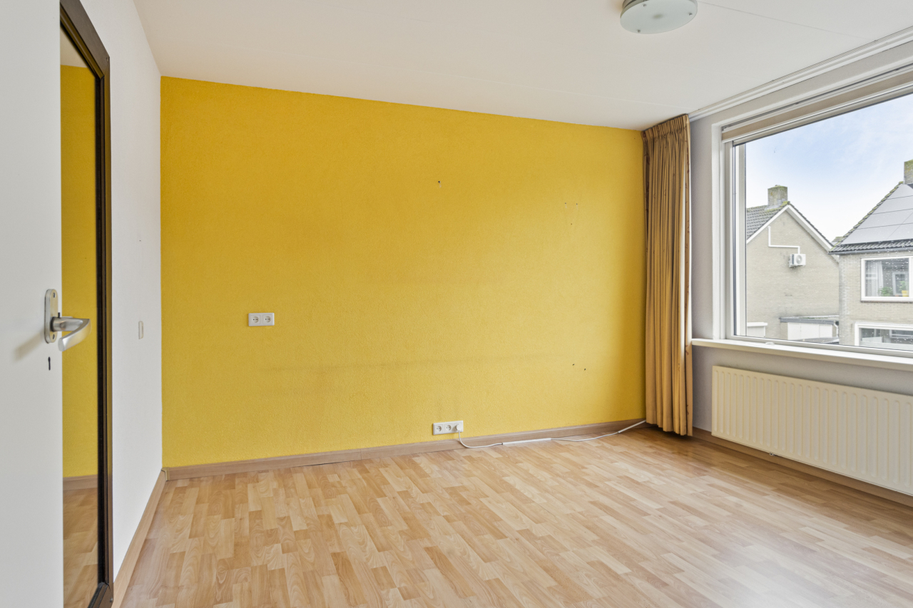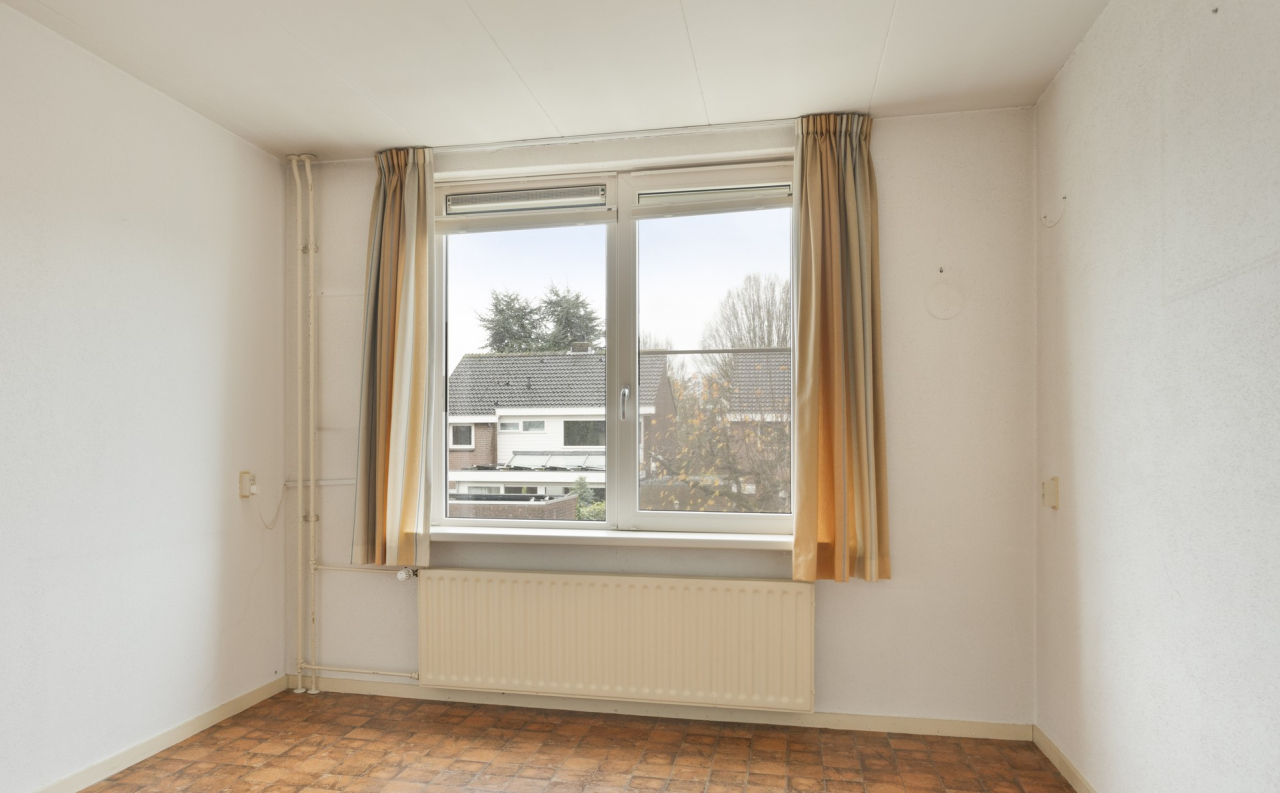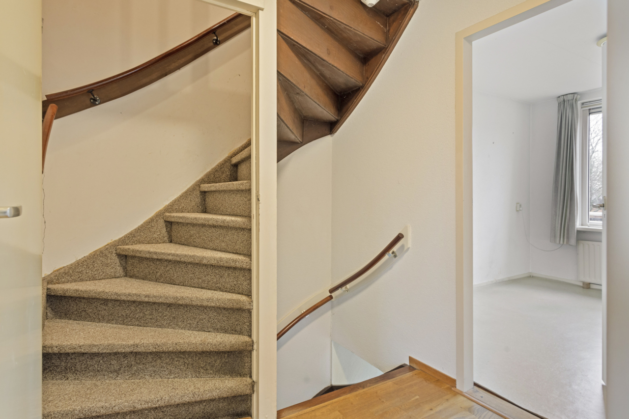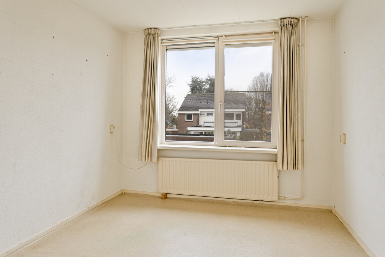 Via een vaste trap is de 2e verdieping bereikbaar met de 4e slaapkamer met groot Veluxraam met hor en bergruimte achter de knieschotten. Op de voorzolder is de witgoedaansluiting en hangt de Remeha CV HR ketel (2020). Achter de woning ligt een zonnige groene tuin met een groot terras direct achter de woning met sierbestrating. Verder borders met beplanting en struiken. Achterin de tuin staat een stenen berging en is een achterom.