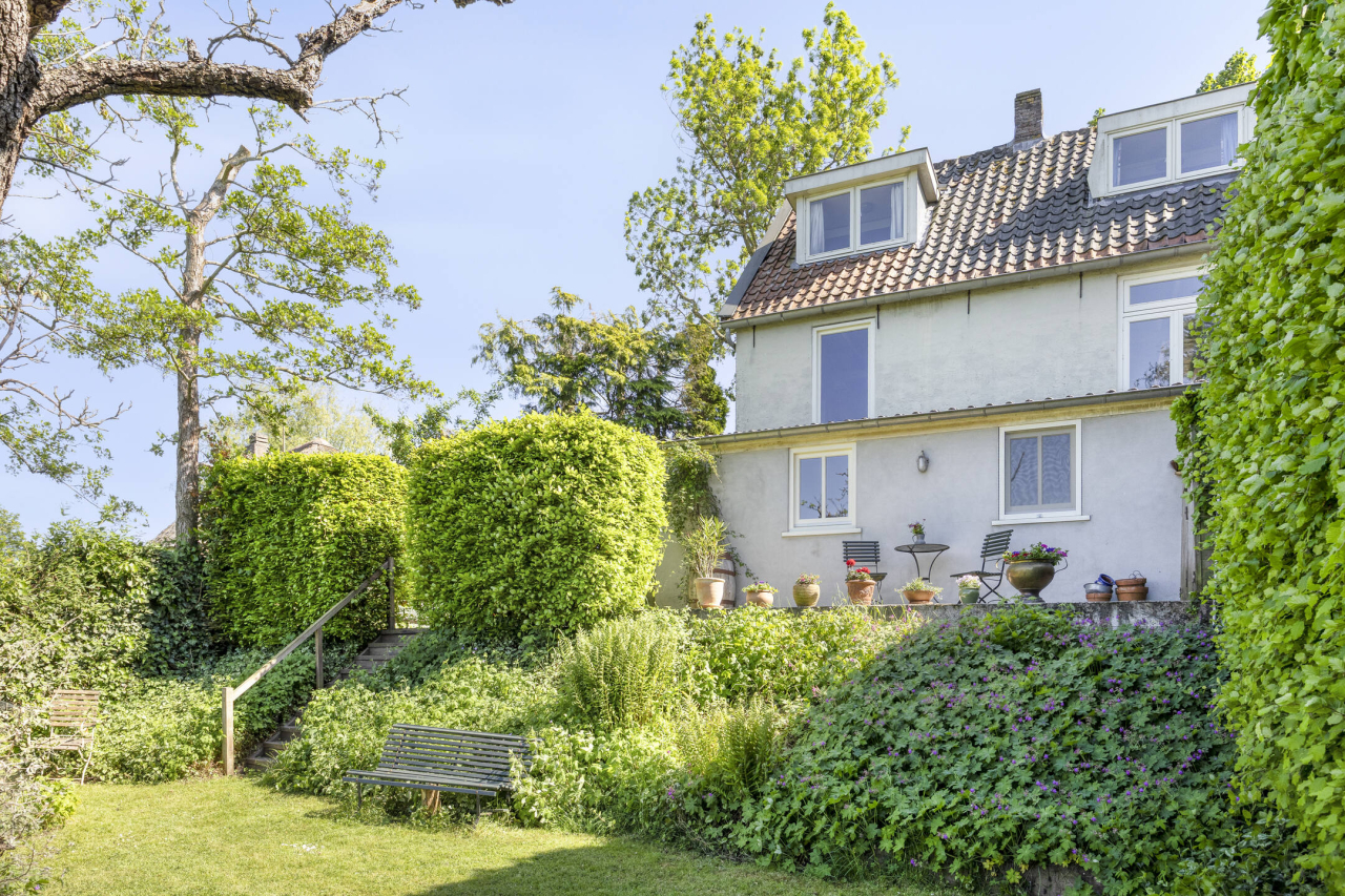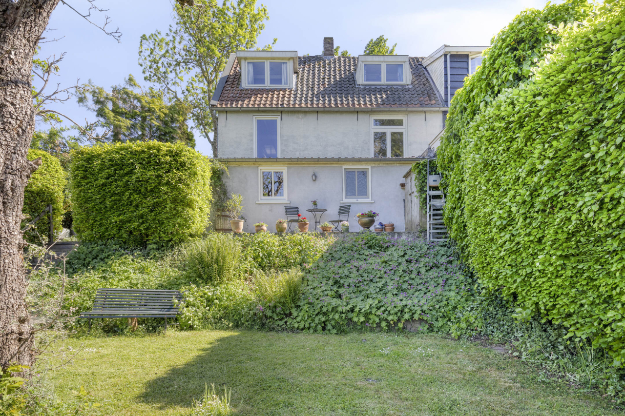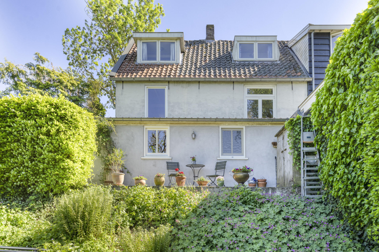 Achter en naast de woning ligt een heerlijke tuin met een groot terras bereikbaar via de tuindeur in het souterrain en via de trap naast de woning. De zijtuin is grotendeels bestraat en voorzien van borders en groene hagen. Achter de uitbouw is een fijn zitje met een houten bergkast en uitzicht over de diepe tuin en uiterwaarden. Via een trap tussen twee hagen is het laagste niveau van de tuin bereikbaar met een groot gazon en meerdere borders met planten, bomen en struiken. De achtertuin loopt door in de uiterwaarden.