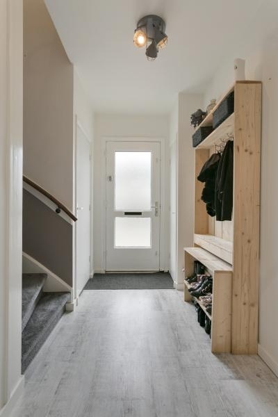 Via de lichte hal met garderobe, meterkast, trapopgang, trapkast en toilet zijn de keuken en woonkamer bereikbaar.