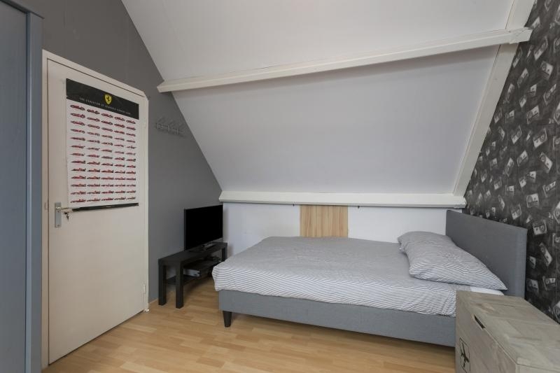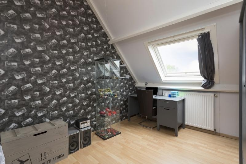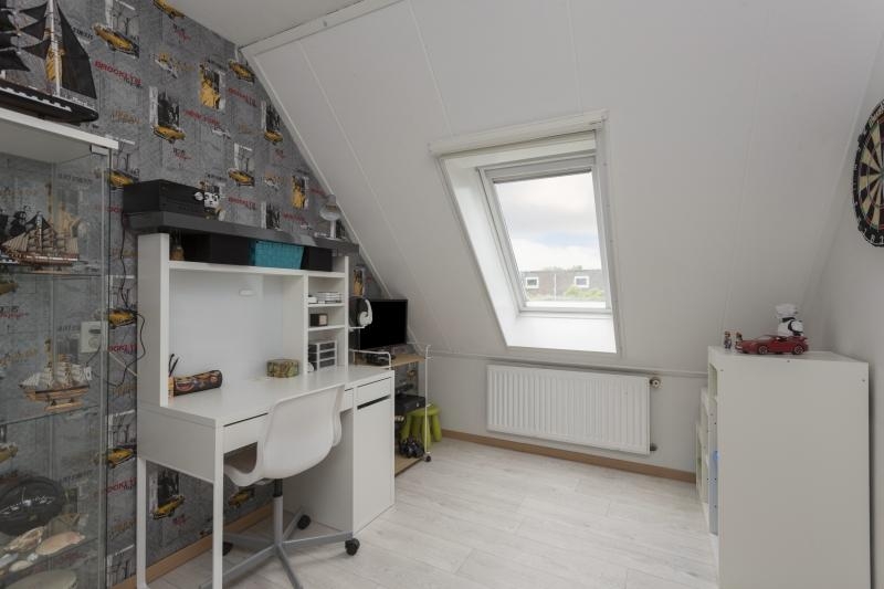 De 4e slaapkamer met groot Veluxraam, bergruimte achter de knieschotten is ruim en tevens voorzien van een laminaatvloer.