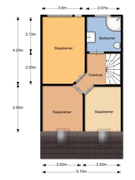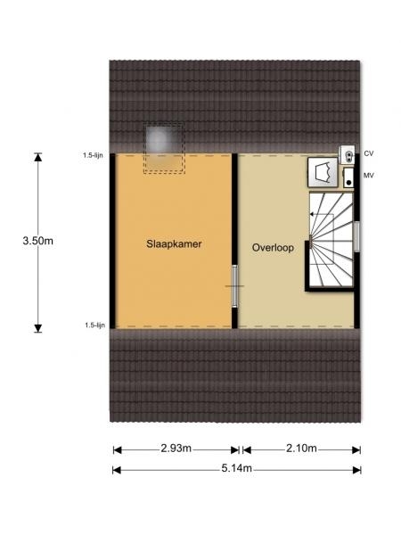 De 2e verdieping is bereikbaar via een vaste trap met allereerst een voorzolder met de witgoedaansluitingen, CV HR combiketel, mechanische ventilatie unit en dakraam.