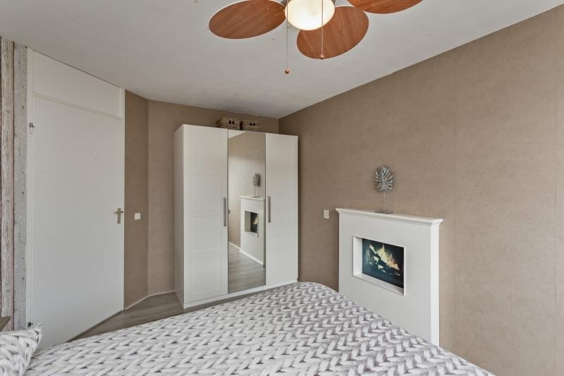 Aan de achterzijde ligt de 3e slaapkamer of ouderslaapkamer met een laminaatvloer zoals op de overloop. Deze kamer is voorzien van een verhuisraam.
