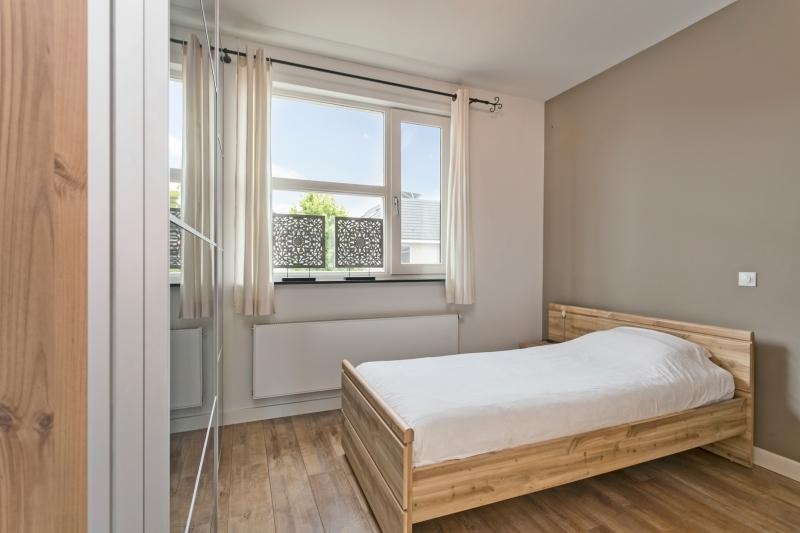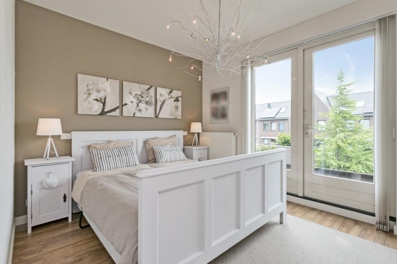 Op de eerste verdieping liggen 2 royale slaapkamers en de complete badkamer. Beide slaapkamers zijn voorzien van elektrisch bedienbare rolluiken. Aan de achterzijde is de ruime ouderslaapkamer met laminaat vloer, openslaande deuren en praktische inloopkast.