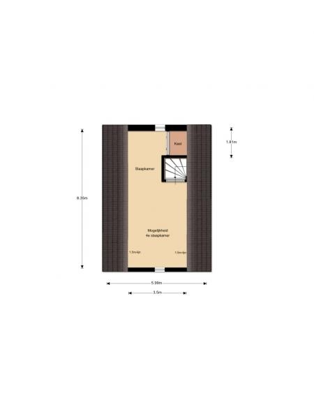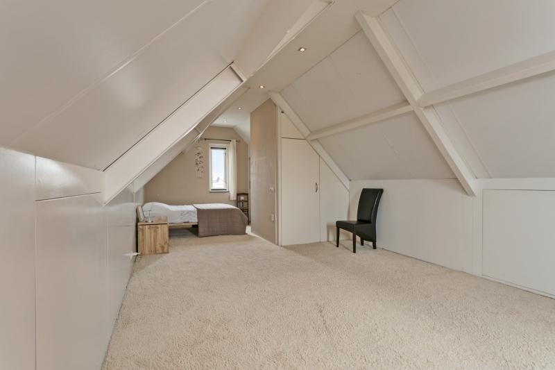 Via een vaste trap is de 2e verdieping bereikbaar met op dit moment een grote (29 msup2;) slaapkamer met een lichte vloerbedekking. Eenvoudig zijn hier 2 slaapkamers van te maken. Aan de voor- en achterzijde zijn ramen en aan de achterzijde is een inbouwkast met de warmte terugwin unit.