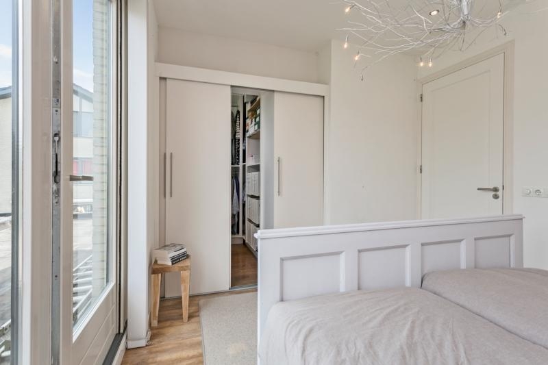 De slaapkamer aan de voorzijde kijkt uit over straat en Parkeiland.