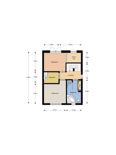 Tussen de slaapkamers ligt de praktisch wasruimte met de wiltgoed aansluitingen en Nefit CV HR ketel.