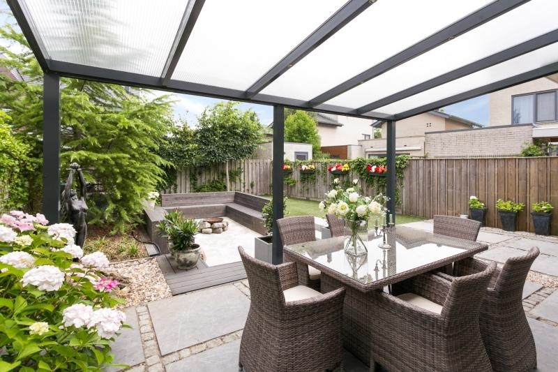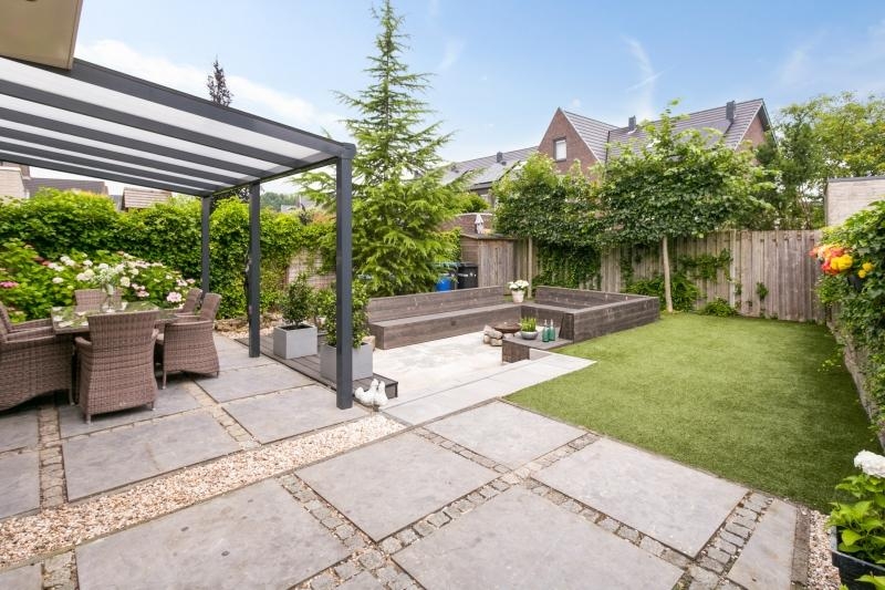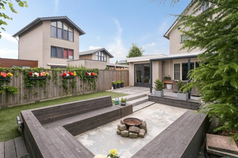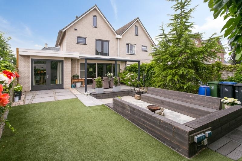 Achter de woning ligt een onderhoudsvriendelijke tuin met een groot terras met overkapping en zitkuil voor vele uurtjes buiten plezier. Verder is er kunstgazon, sierbestrating, siergrind en diverse borders en bomen / struiken. Achterin de tuin staat een houten bergkast voor o.a. tuingereedschap. Het is in de tuin heerlijk toeven! Komt u kijken?