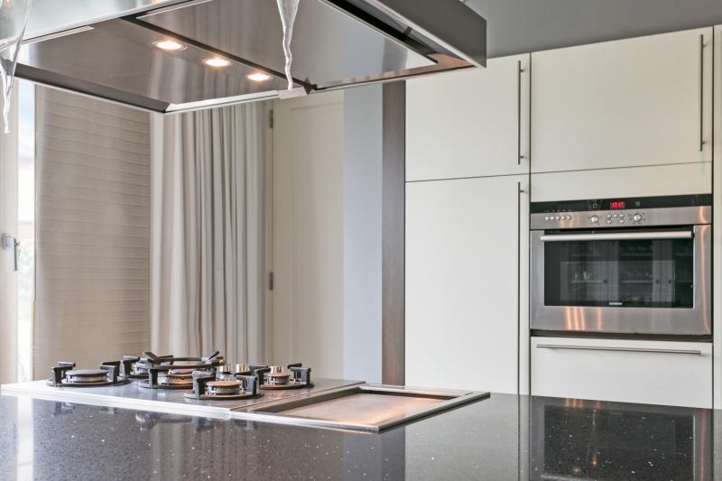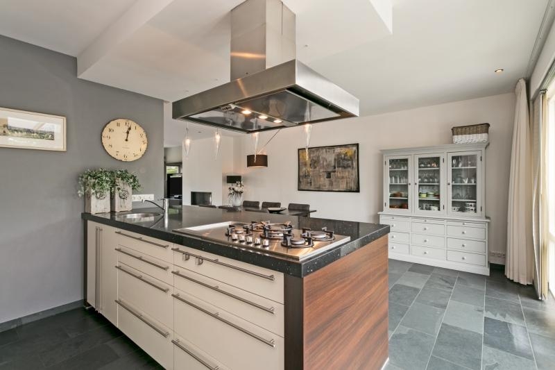 De moderne, open keuken met kookeiland en ontbijtbar is voorzien van diverse Siemens inbouwapparatuur.