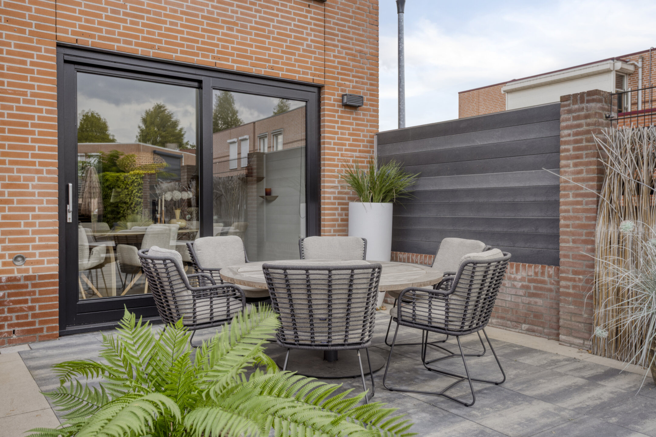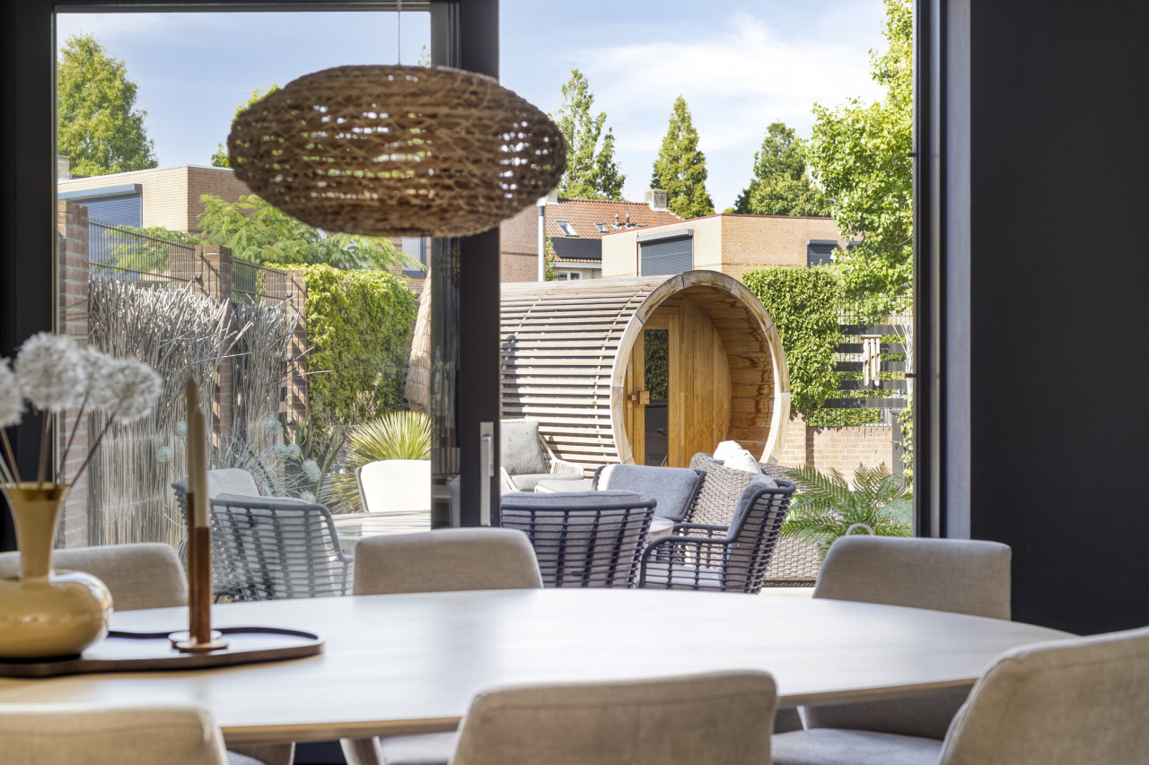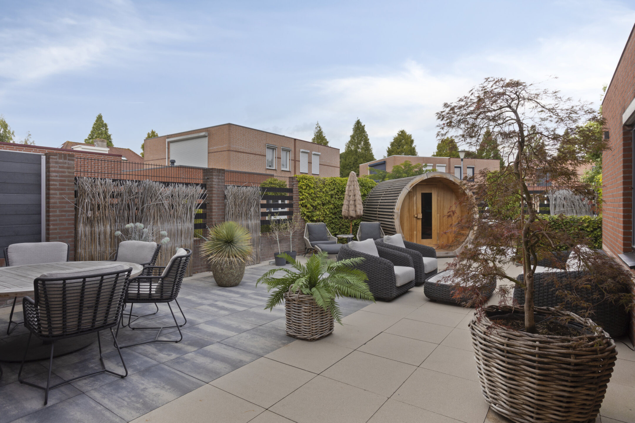 Achter het huis ligt een zonnige tuin grotendeels bestraat met fraaie siertegels en siergrind waardoor onderhoudsvriendelijk. De gedeeltelijk ommuurde tuin is voorzien van diverse terrassen en sierhekwerk met een tuinpoort als achterom die uitkomt op de oprit en verkeersluw pleintje. In de ronde houten buitensauna is het heerlijk genieten. De tuin is gelegen op het Westen - NoordWest dus er is altijd wel een zonnig plekje te vinden. De woning ligt vlakbij het stadspark, Parkeiland met speeltuinen en wandelgebied, winkelcentrum De Portage, scholen, kinderopvang ,NS station en oprit A2. Een heerlijk huis. Kom je kijken?