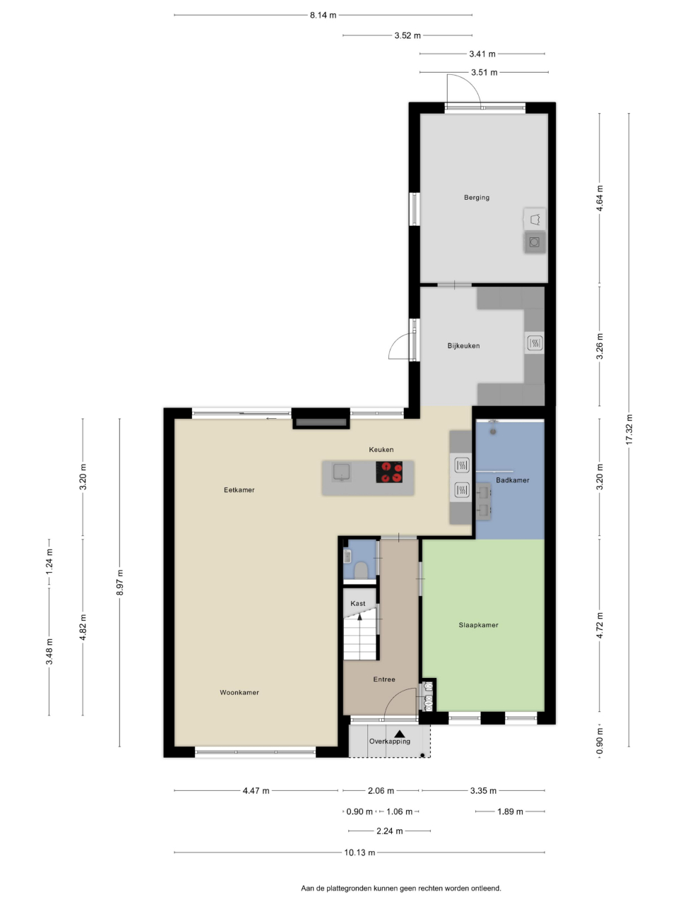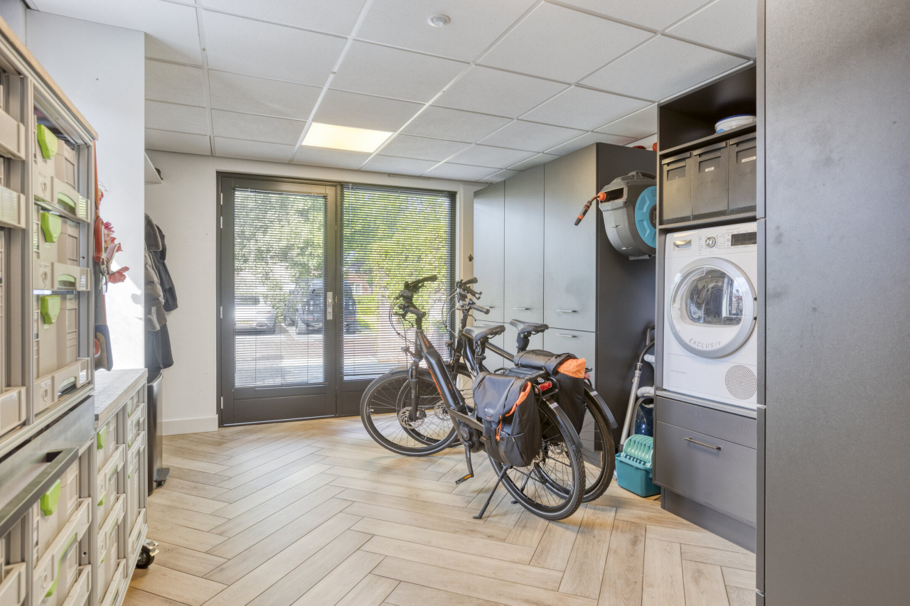 Aan achterzijde van de woning is de berging of de oorspronkelijke garage met eigen oprit. Hier bevinden zich tevens de witgoedaansluitingen. Deze ruimte is voor diverse doeleinden te gebruiken, bijvoorbeeld als praktijkruimte. De tegelvloer is voorzien van vloerverwarming en er is een groot raam en een loopdeur naar buiten.