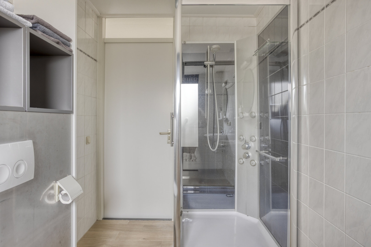 Via de trap in de hal is de 1e verdieping bereikbaar. Aan de overloop liggen 4 slaapkamers, de 2e badkamer en een inbouwkast met de Vaillant CV HR combiketel. De 1e verdieping is in 2008 uitgebouwd met 2 extra slaapkamers waardoor er nu 4 royale slaapkamers aanwezig zijn. Alle slaapkamers hebben een lichte laminaatvloer en grote ramen die zorgen voor veel lichtinval. De volledig betegelde 2e badkamer is ingericht met een luxe douchecabine met thermostaatkraan en extra massage stralen, een wastafel en 2e toilet (hangend). Alle slaapkamers zijn royaal en voorzien van diverse ramen en een lichte laminaatvloer.