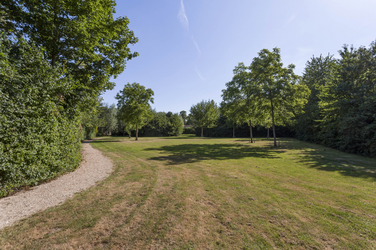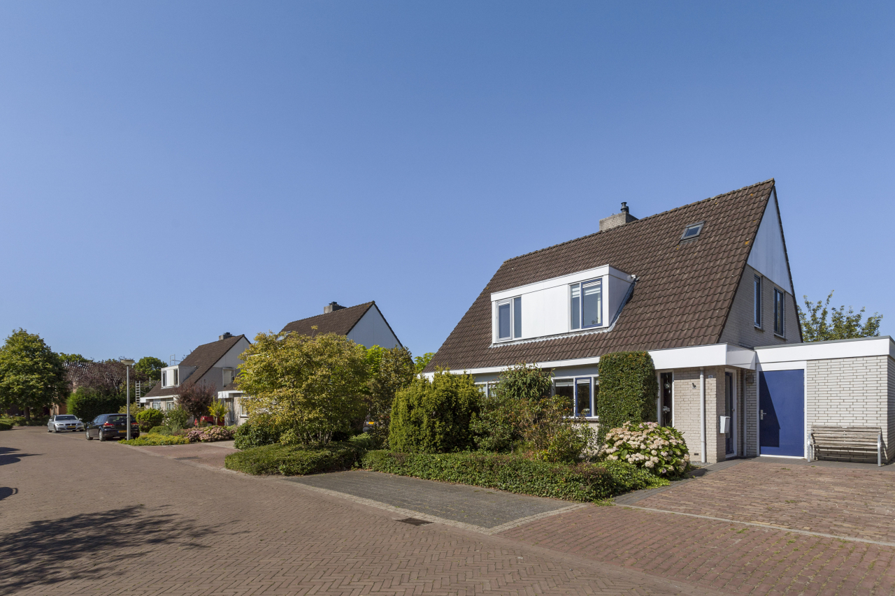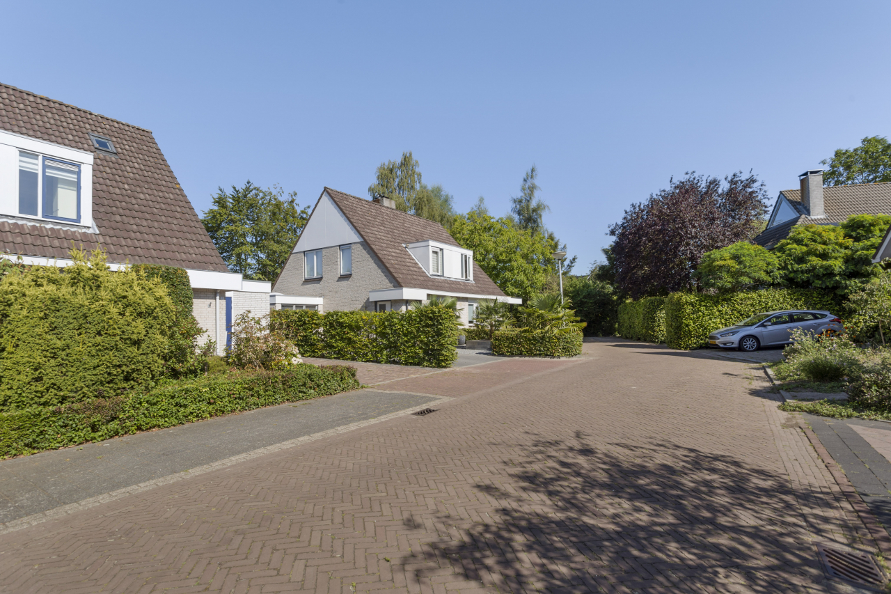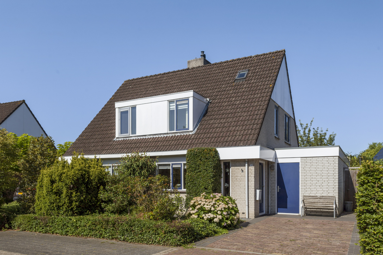 Achter de woning ligt een zonnige, heerlijke tuin op het Westen met achterom. De tuin, bereikbaar via een tuindeur in de woonkamer en openslaande deuren in de eetkamer, is voorzien van een groot terras achter de woning. Verder is er sierbestrating en diverse borders met beplanting en struiken. Er is tevens een groot zonnescherm aan de achtergevel. Achterin de tuin staat een houten veranda met houtkachel die zorgt voor vele comfortabele uren buiten.