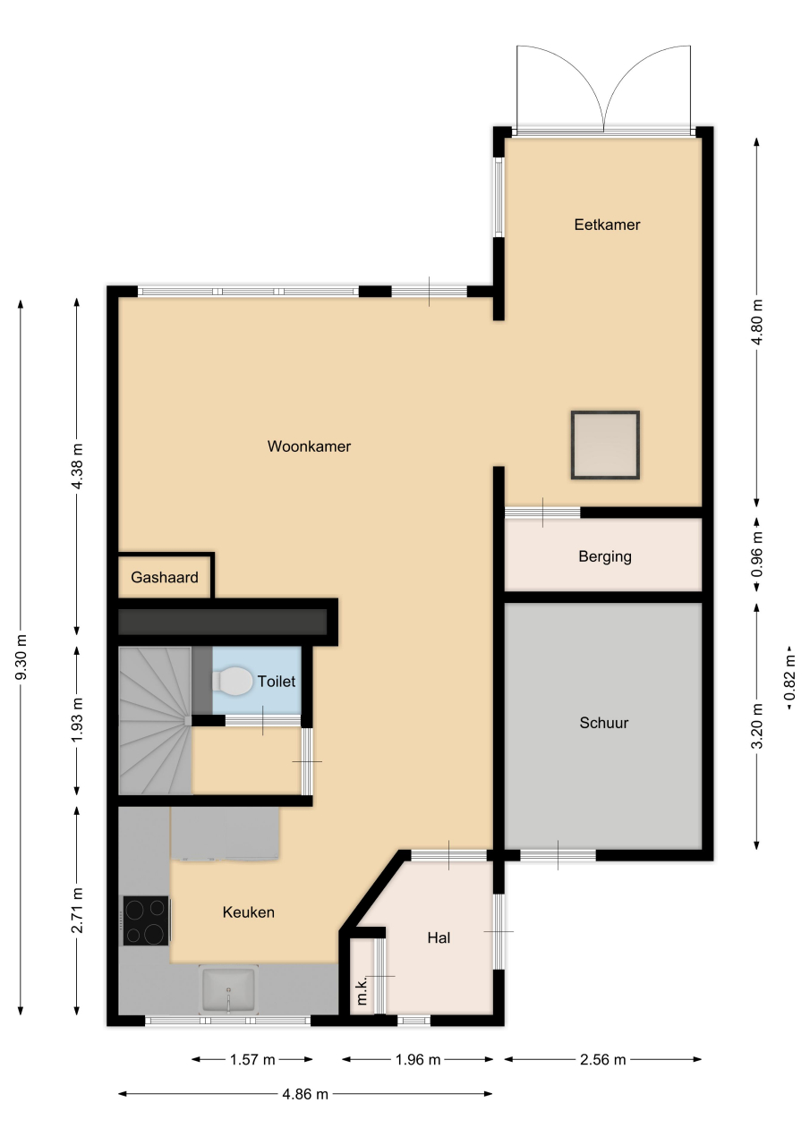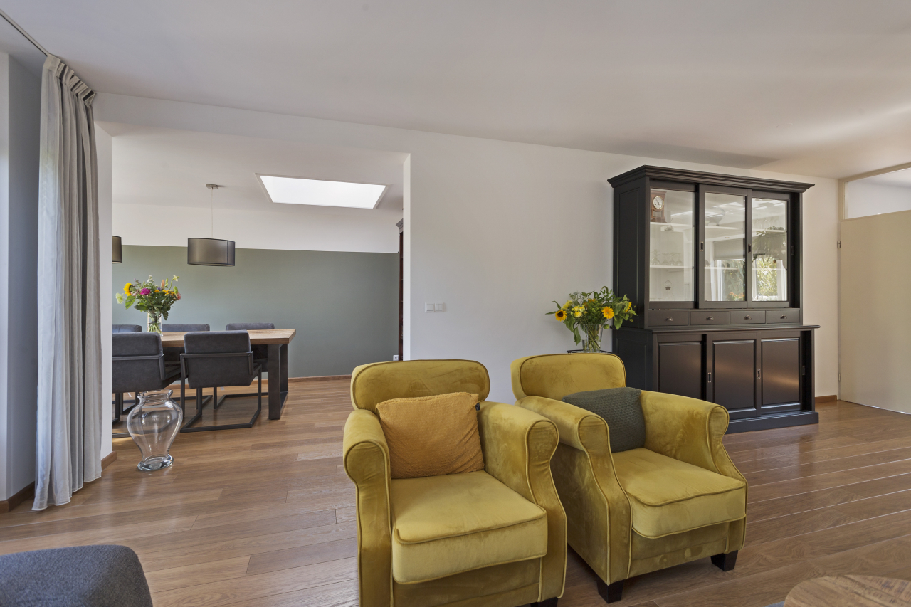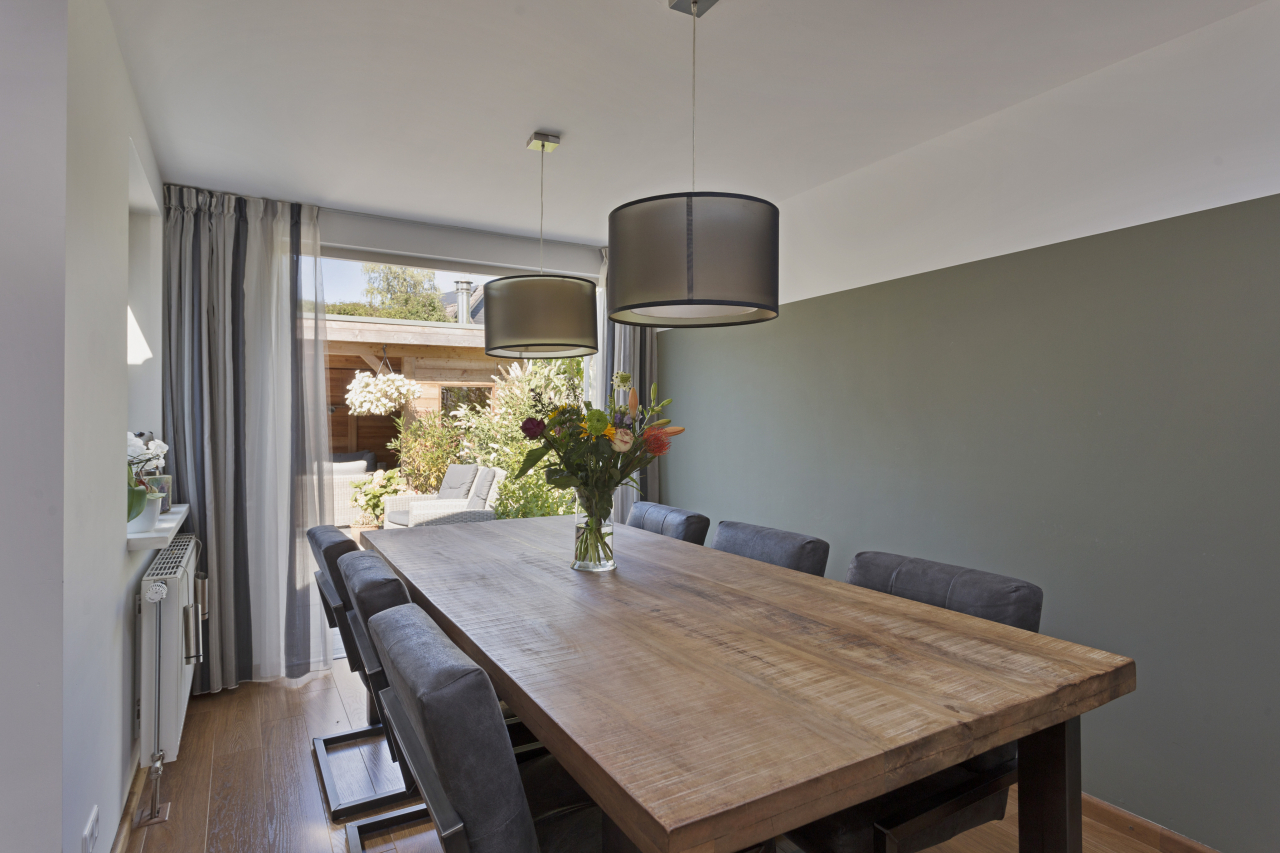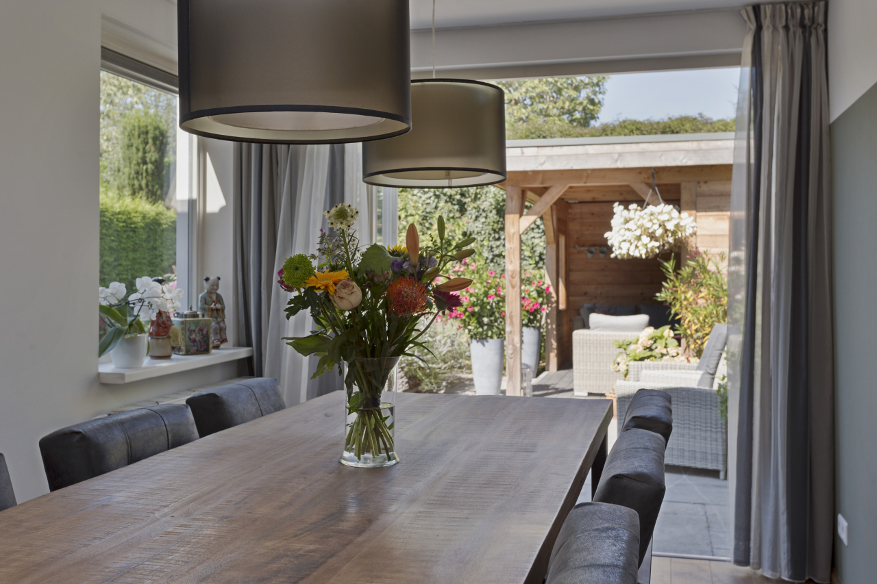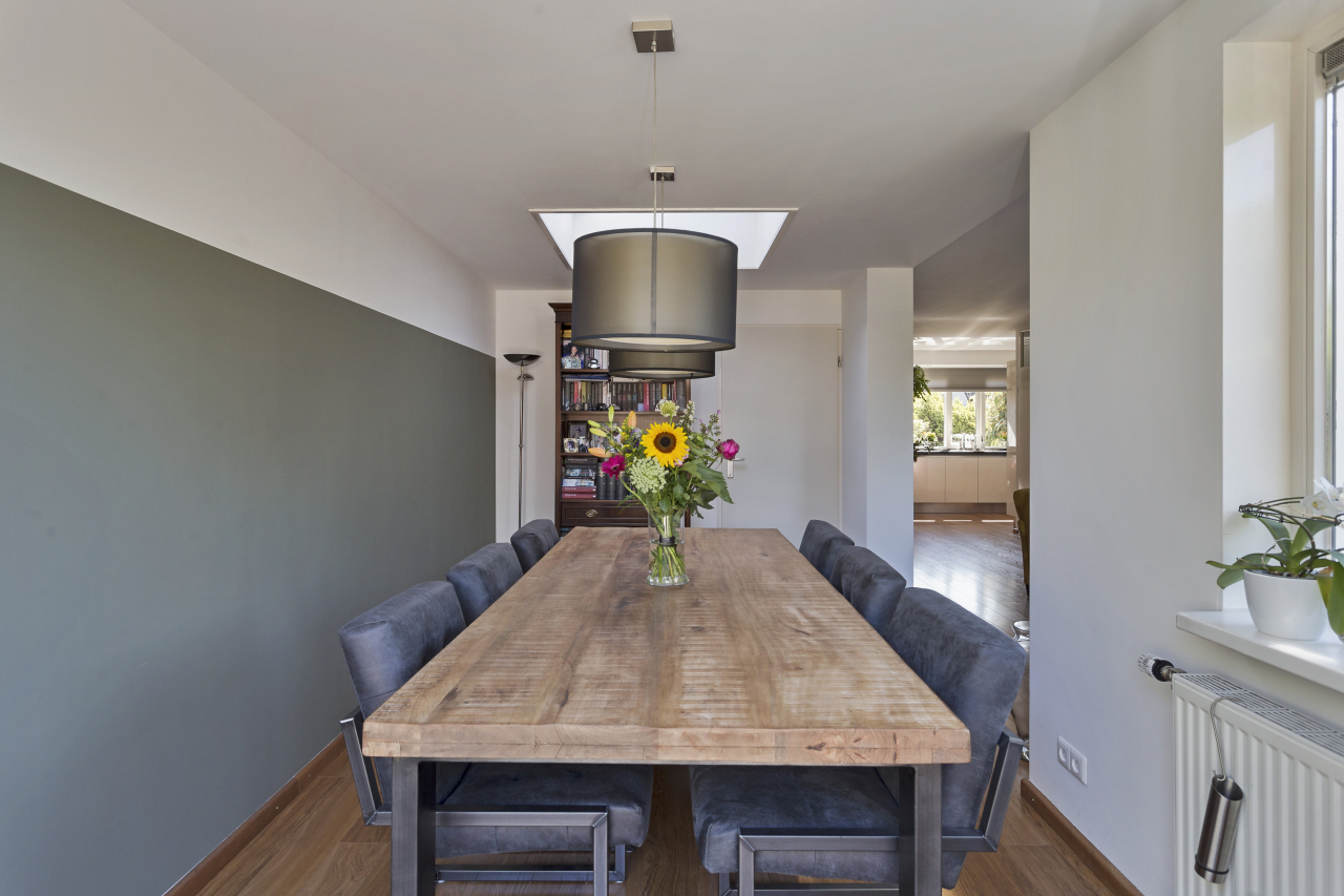De extra eetkamer (in de voormalige garage) is voorzien van openslaande deuren, een extra lichtkoepel en een grote inbouwkast. Aan de voorzijde bevindt zich de ruime berging.