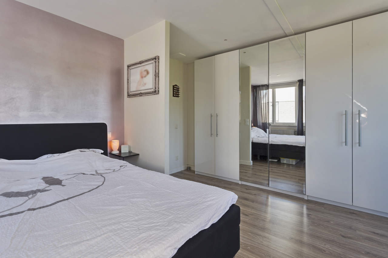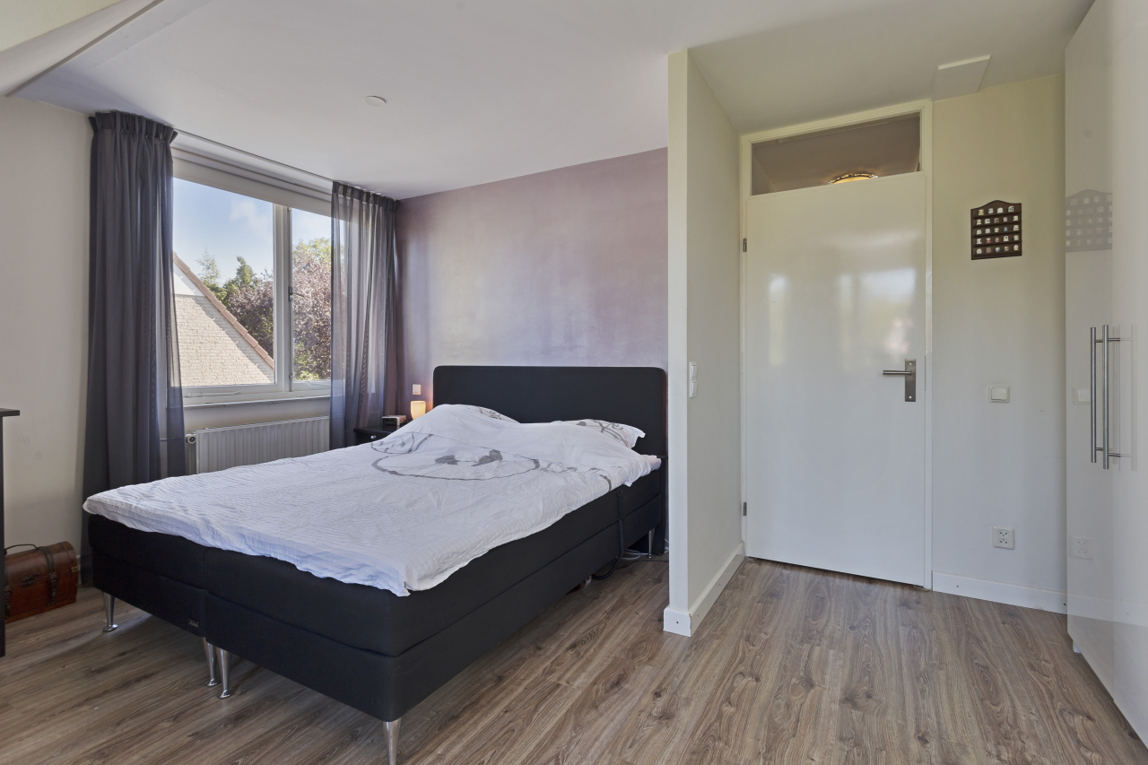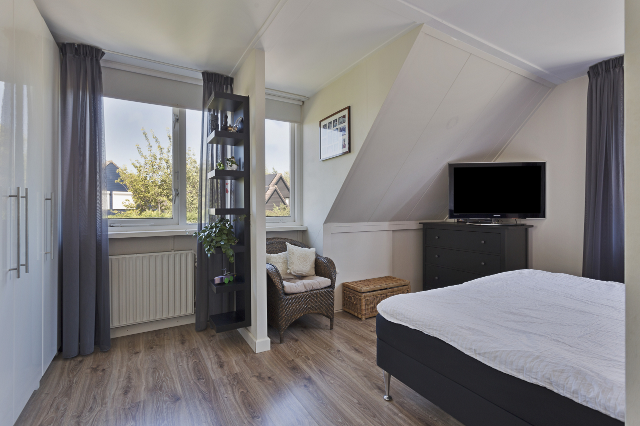 Aan de achterzijde ligt de grote ouderslaapkamer (voorheen 2 slaapkamers), ook met een mooie laminaatvloer. De dakkapel geeft extra leefruimte en door de diverse ramen is de slaapkamer heerlijk licht. De slaapkamer is voorzien van een grote kastenwand.