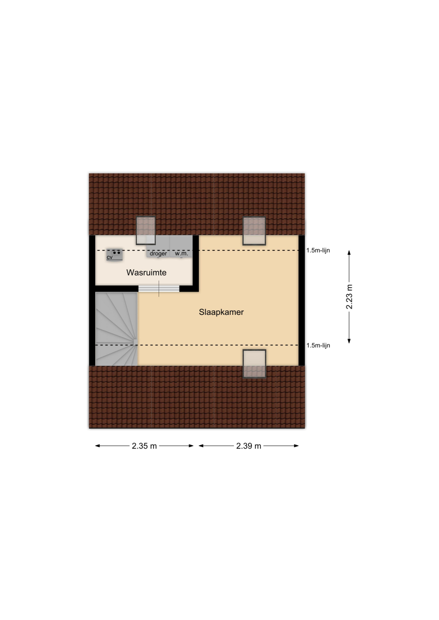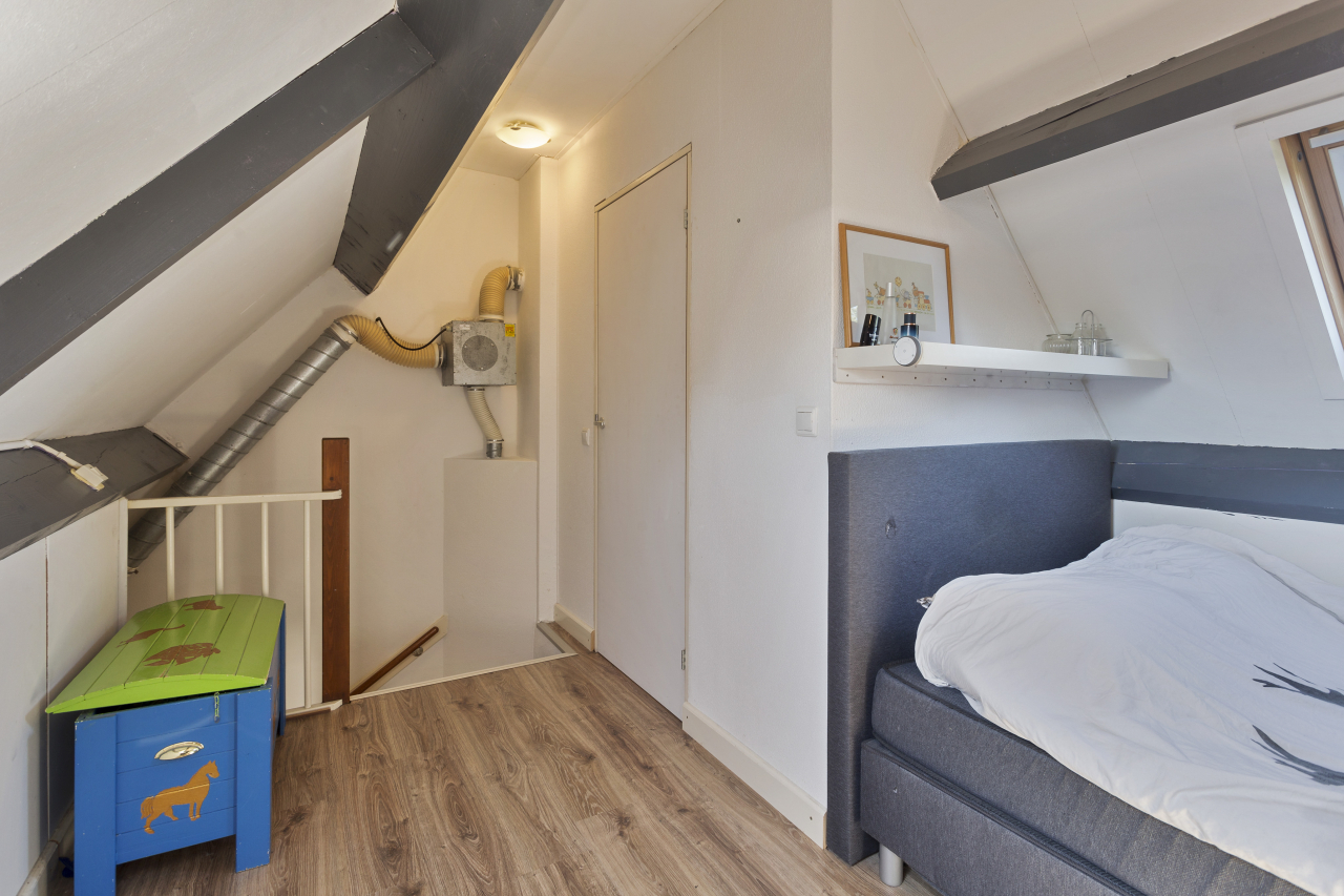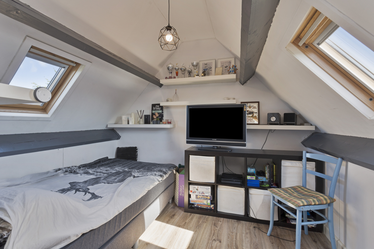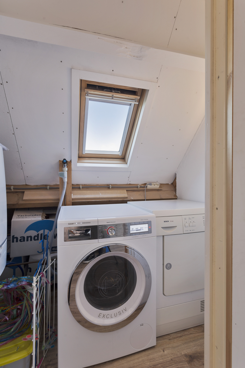 Via een vaste trap is de 2e verdieping bereikbaar met de 3e slaapkamer en een extra witgoed ruimte met de Remeha CV HR combiketel, mechanische ventilatie unit. Er is extra bergruimte achter de knieschotten. Aan de voorzijde is 1 Velux dakraam en aan de achterzijde zijn er 2.