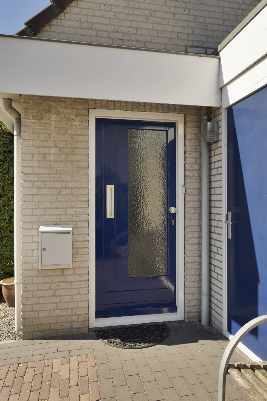 De entree van de woning is aan de zijkant naast de deur naar de berging. Deze praktisch berging heeft veel opbergmogelijkheden en voldoende ruimte voor o.a. fietsen.