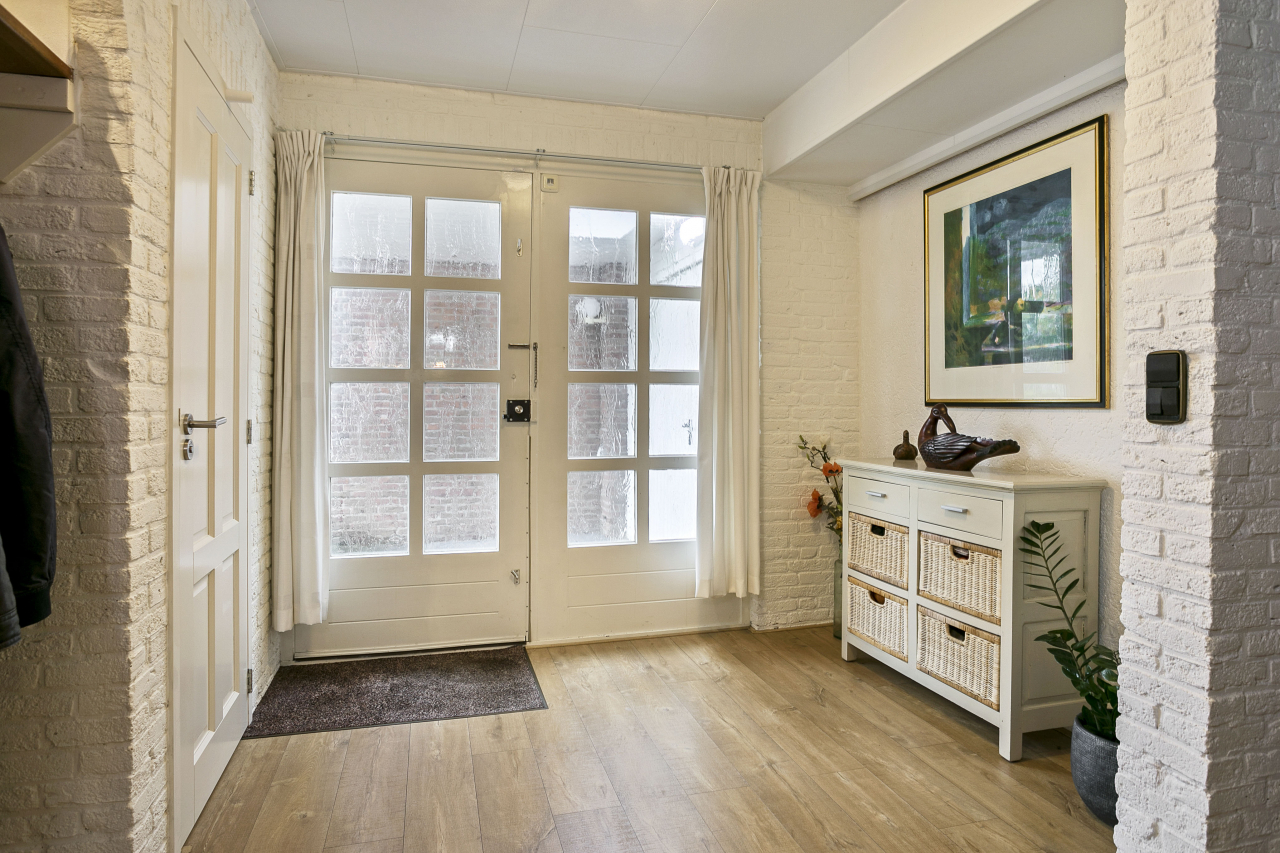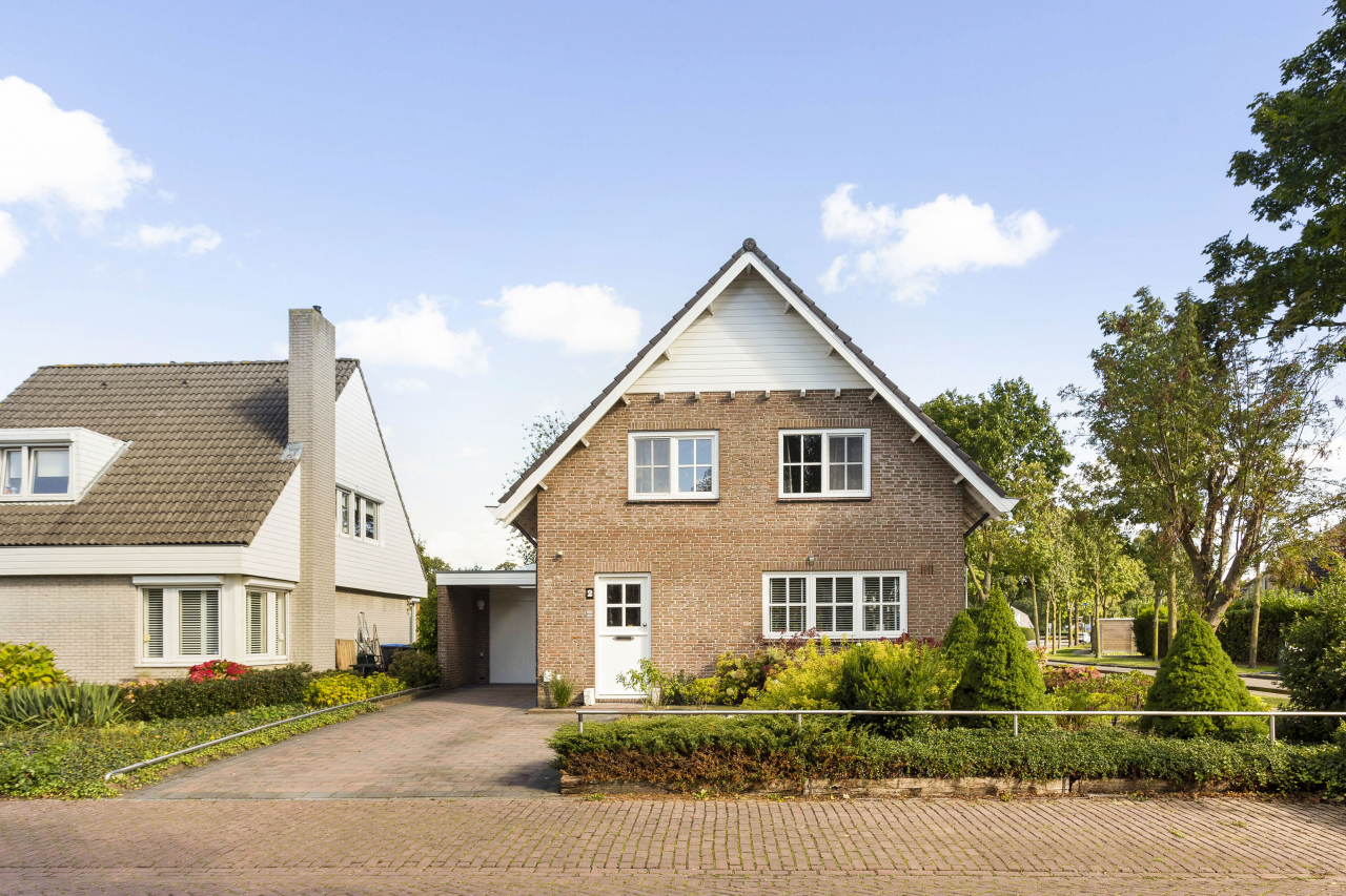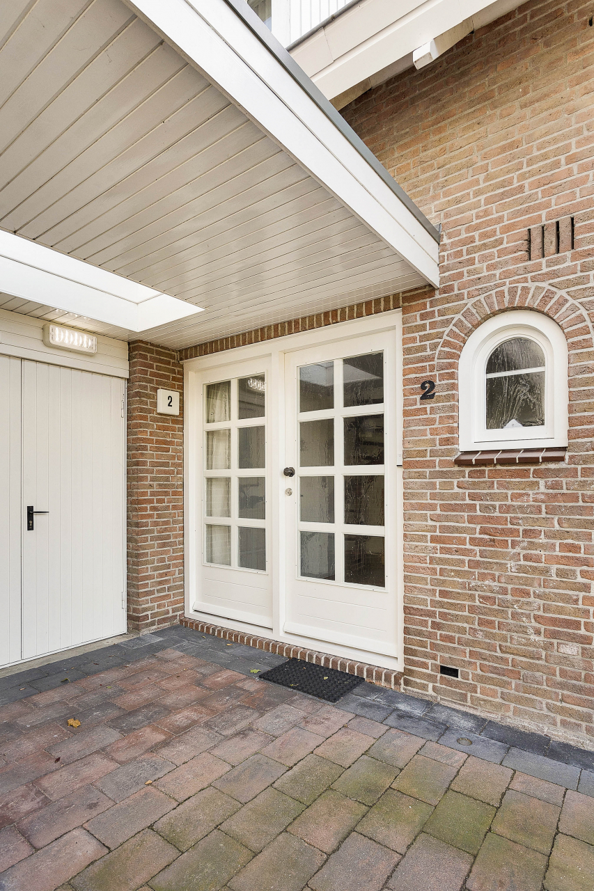 De overdekte entree van de woning is aan de zijkant naast de garage. De oprit naar de garage is geschikt voor meerdere auto’s.