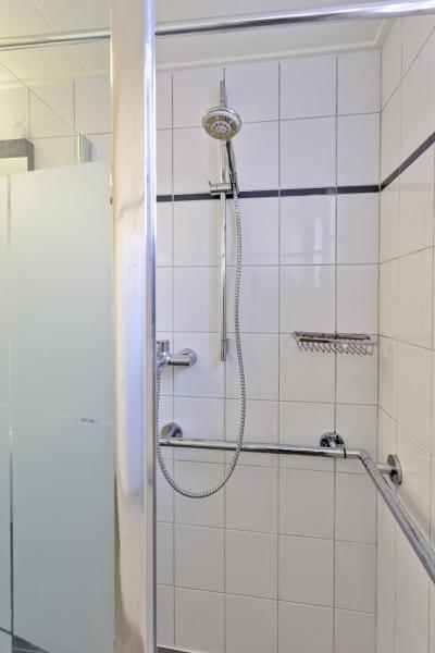 Aan de voorzijde op de begane grond ligt aansluitend aan de woonkamer (via schuifdeuren) de TV kamer. Hiernaast is een moderne badkamer met inloopdouche, dubbele wastafel, designradiator en een apart toilet.