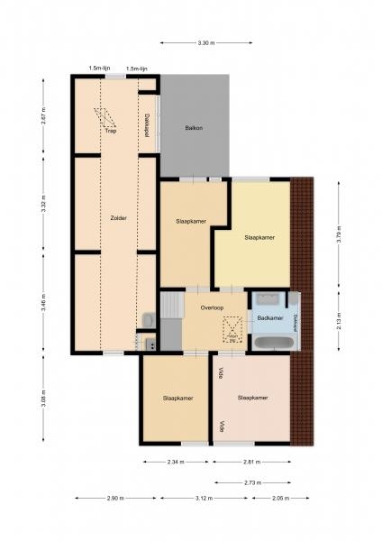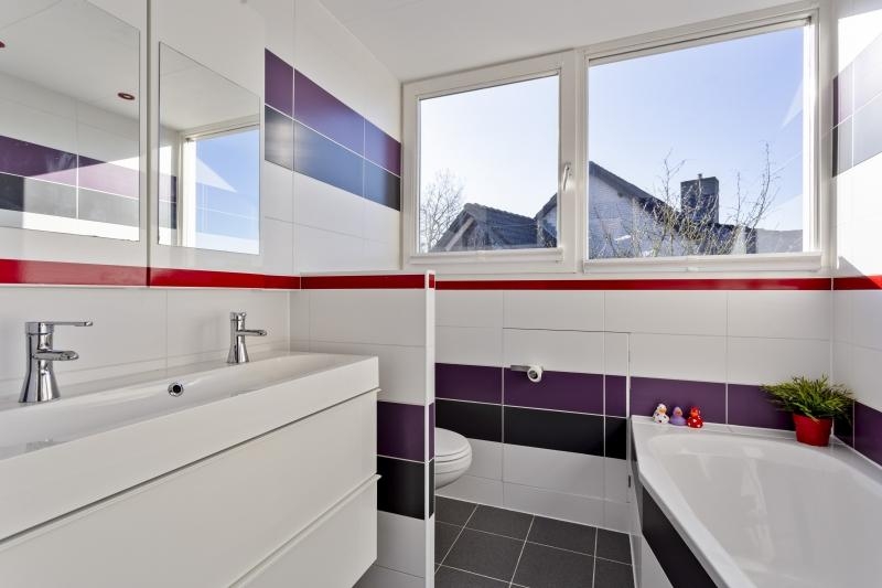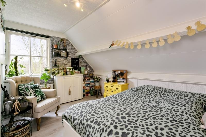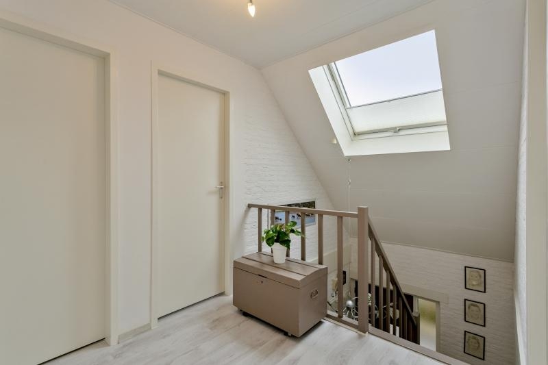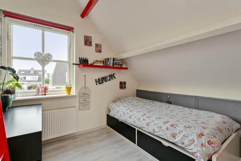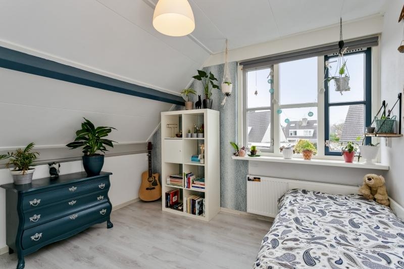 Op de 1e verdieping liggen aan de royale overloop 4 lichte slaapkamers en de moderne 2e badkamer met dakkapel. Eeacute;n van de slaapkamers, aan de achterzijde, heeft een deur naar het balkon. De hele bovenverdieping heeft een lichte laminaatvloer. Alle kamers hebben de extra opbergruimte d.m.v. knieschotten.