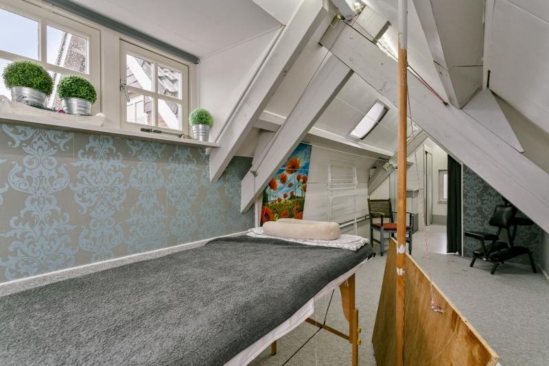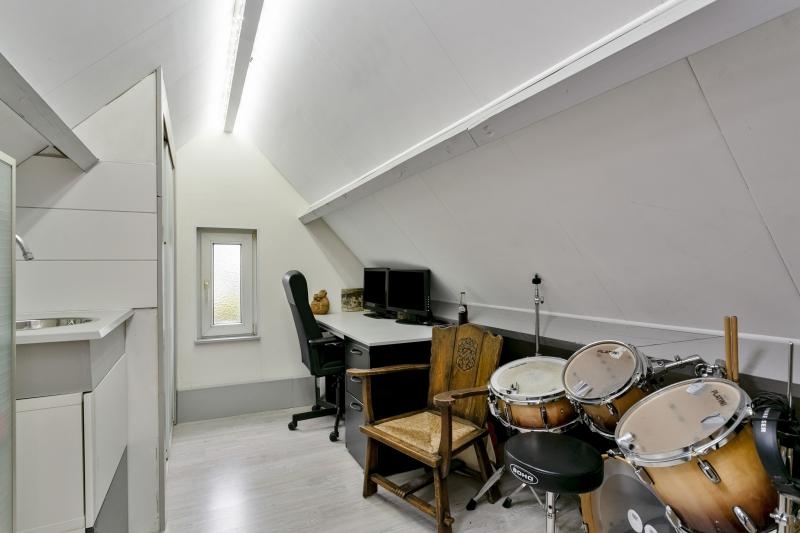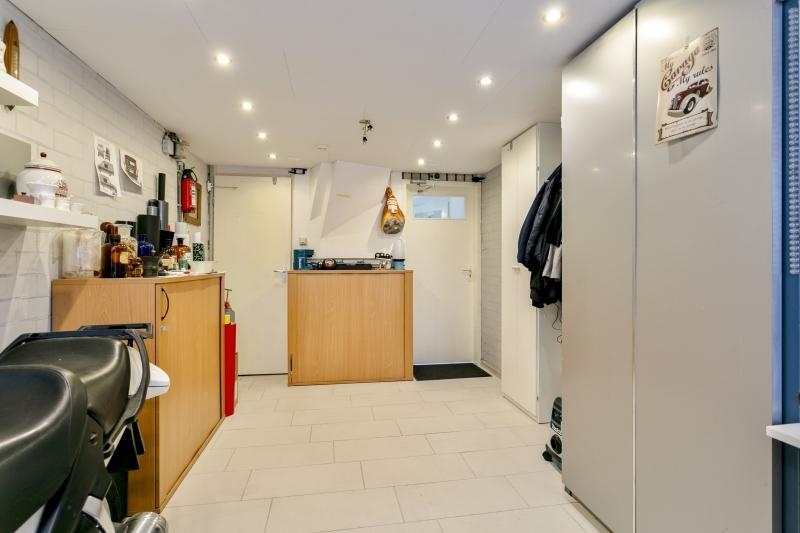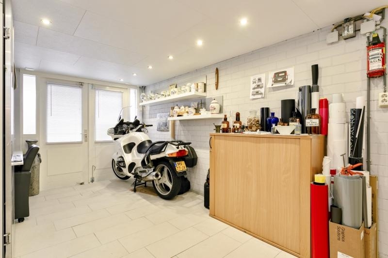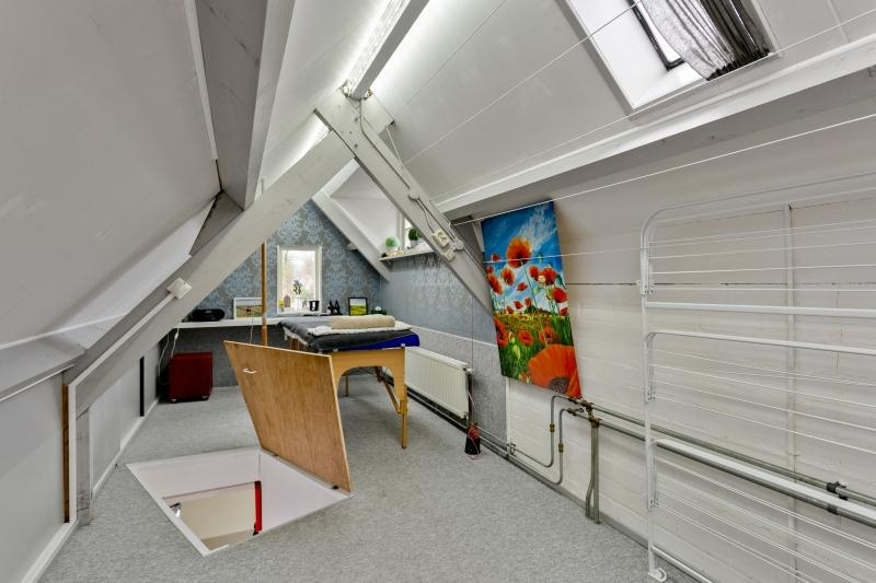 De geisoleerde garage is vanuit de bijkeuken bereikbaar. Aan de voorzijde is een dubbele deur met ramen waardoor deze ruimte voor diverse doeleinden geschikt is. De praktijkruimte boven de garage is via een vaste trap in de bijkeuken bereikbaar. Op zolder is een dakkapel voor extra werkruimte, een wastafel en de Nefit Topline HR CV ketel.