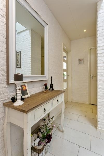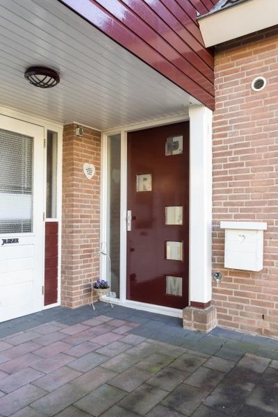 De overdekte entree van de woning is aan de voorzijde naast de garage. De oprit naar de garage is geschikt voor meerdere autorsquo;s.