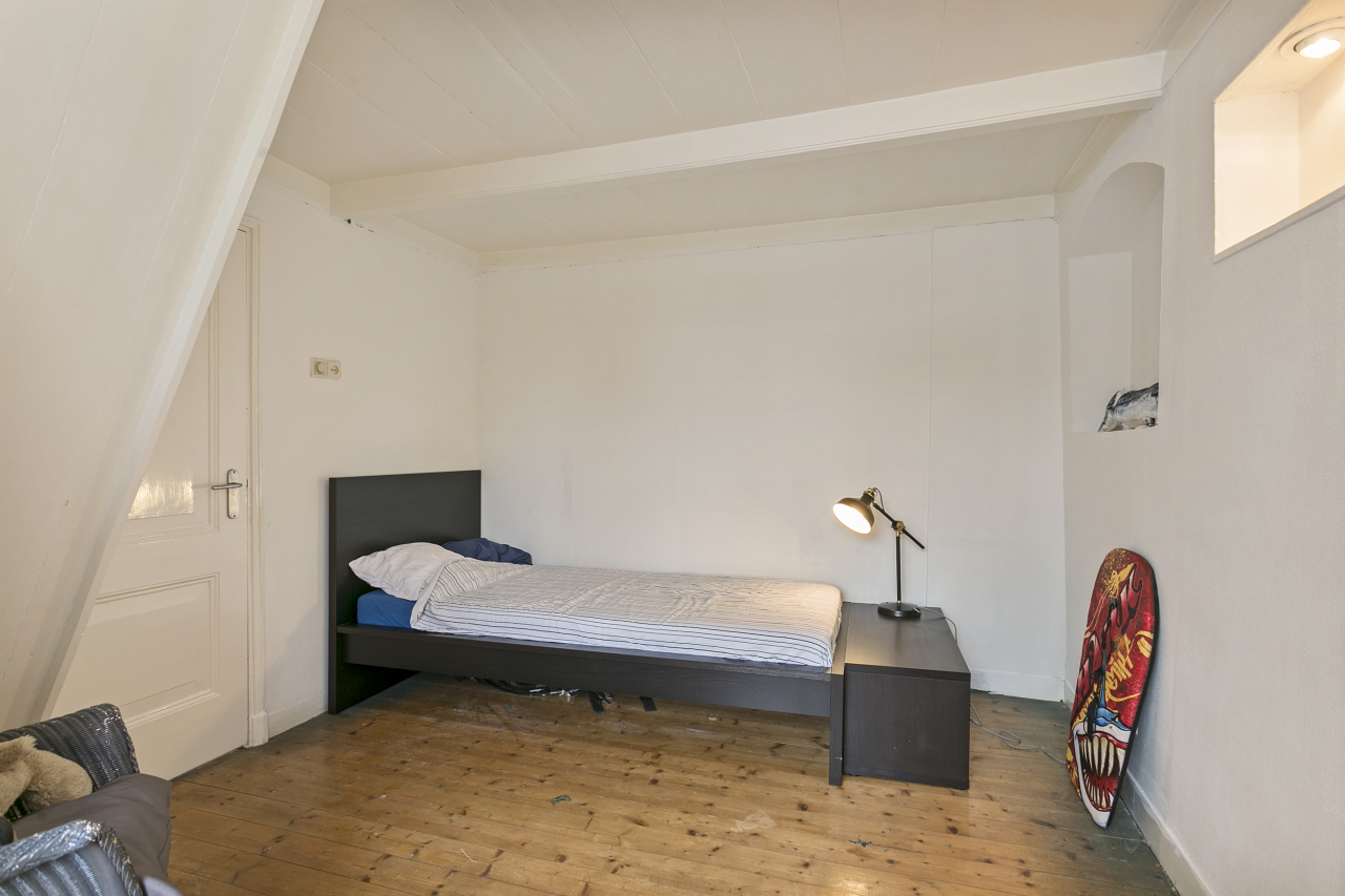 Op de 1e verdieping liggen aan de overloop 2 ruime (slaap) kamers beide met een fraaie paneeldeur. De slaapkamer aan de achterzijde is voorzien van een houten vloer, balkenplafond, raam met roedeverdeling, rolluik en diverse nissen in de muur.