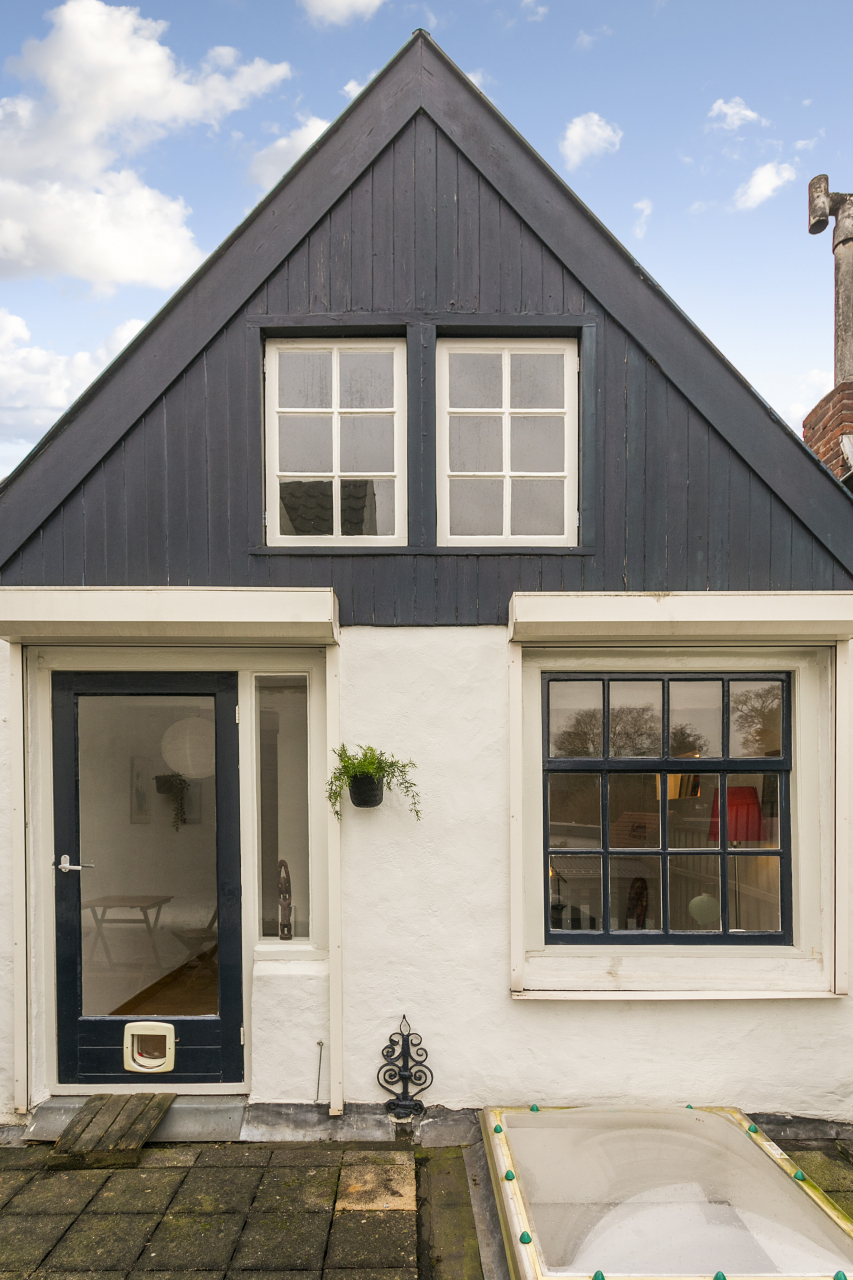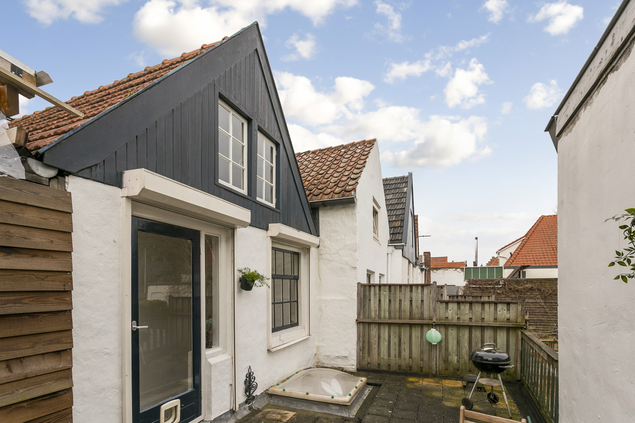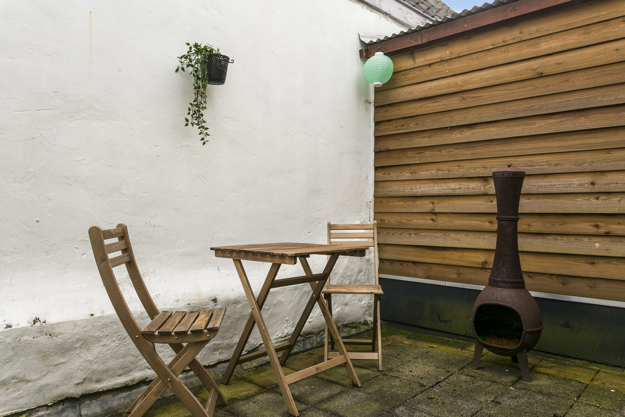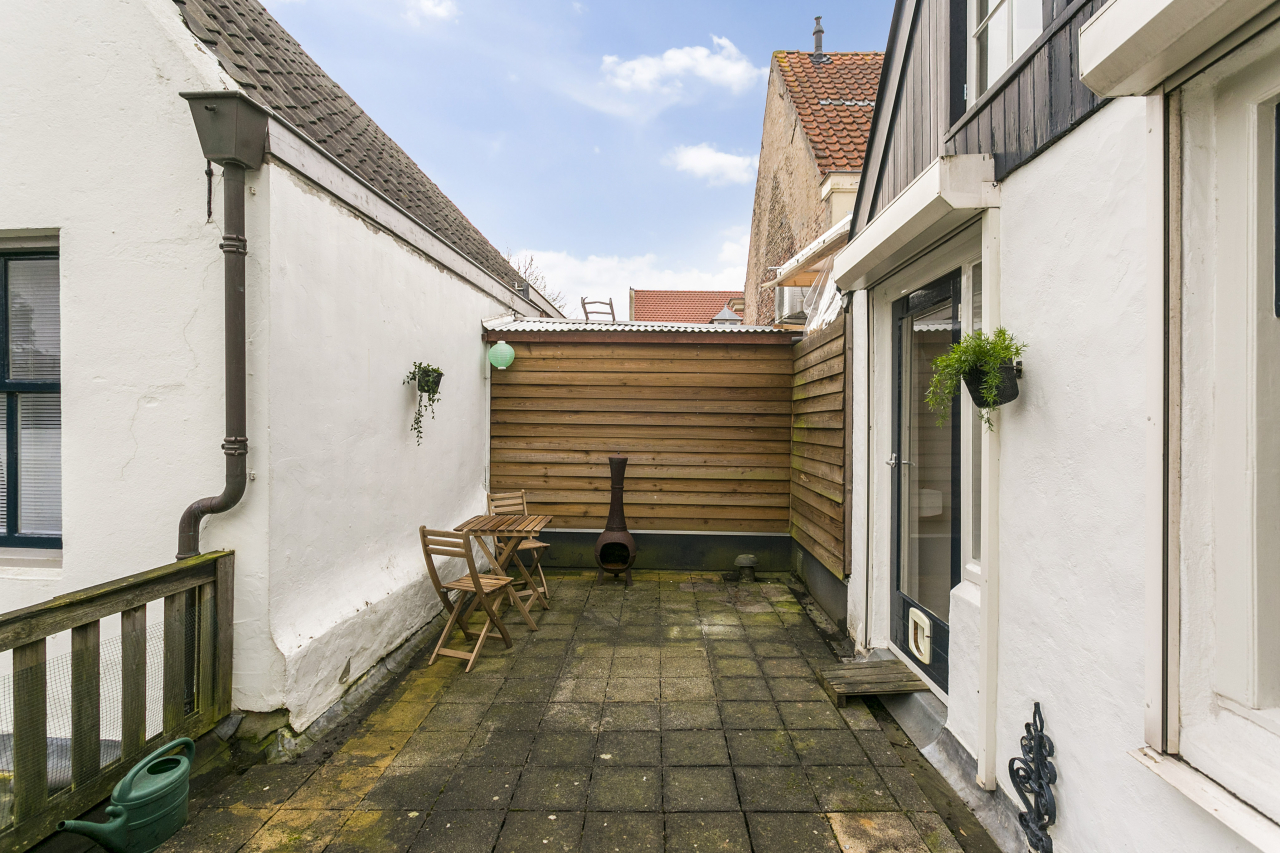 Achter de woning ligt op de 1e verdieping en bereikbaar via de overloop, een groot dakterras met zicht op de Sint Maartenkerk en -Toren