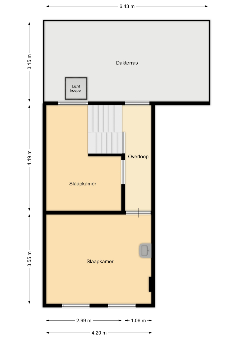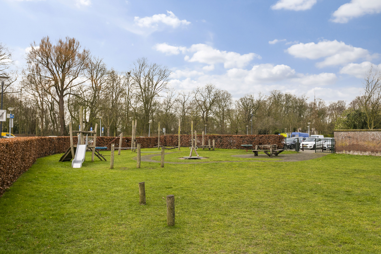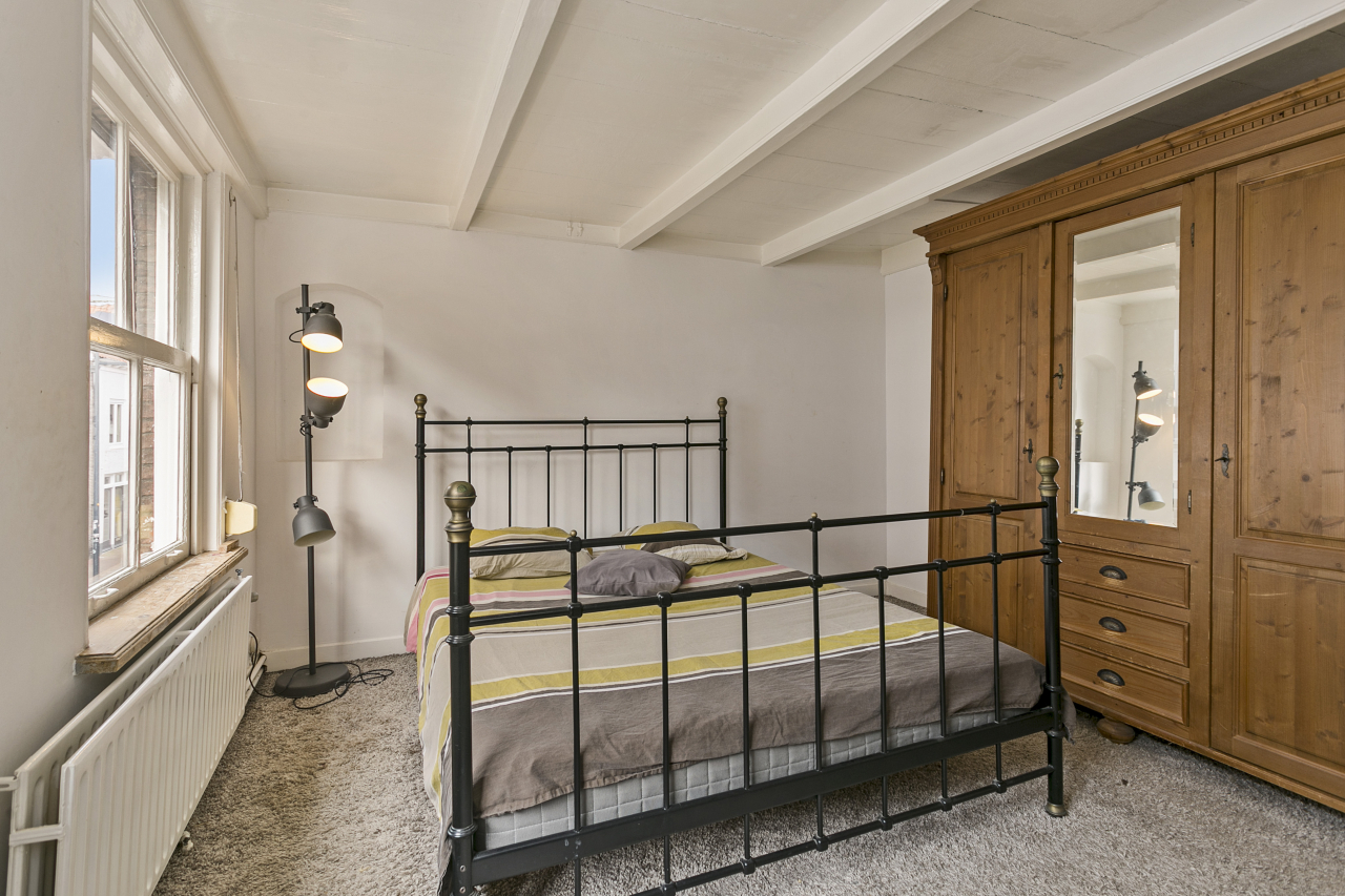 Achter de woning ligt op de 1e verdieping en bereikbaar via de overloop, een groot dakterras met zicht op de Sint Maartenkerk en -Toren