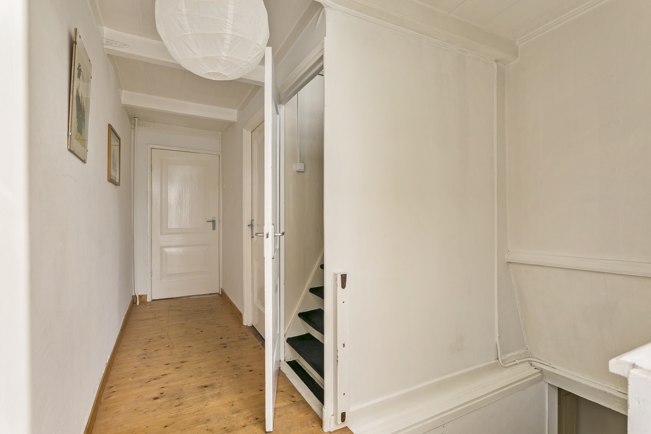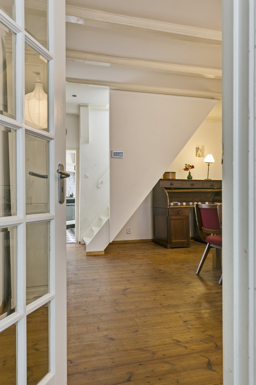 Op de overloop is de toegang tot de trapopgang naar de ruime 2e verdieping, tevens met een fraaie paneeldeur.