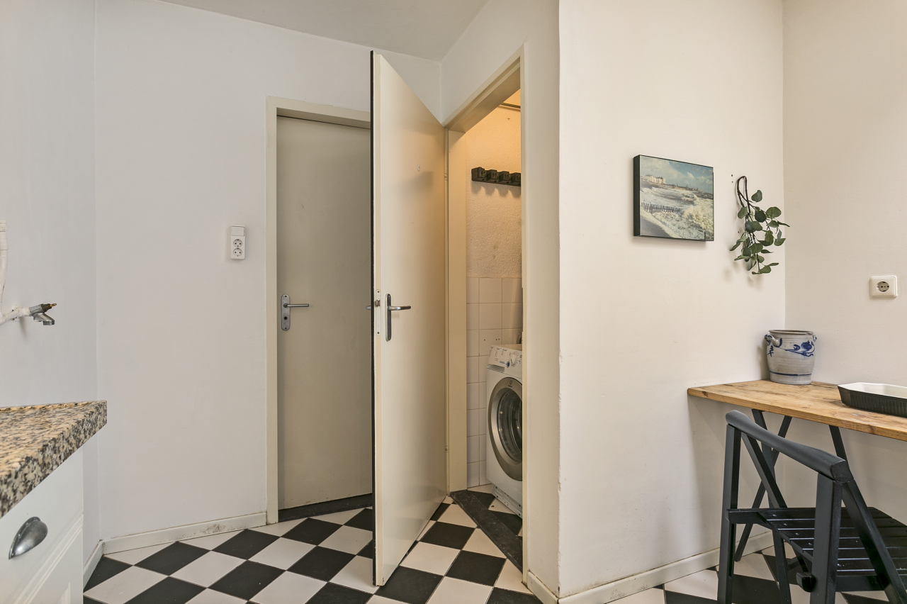 Via een smalle deur is de berging aan de voorzijde bereikbaar. Deze is ingericht met aan 2 zijden praktische inbouwkasten met schuifdeuren, een dakraam en de spiksplinternieuwe Intergas CV HR ketel (2022).