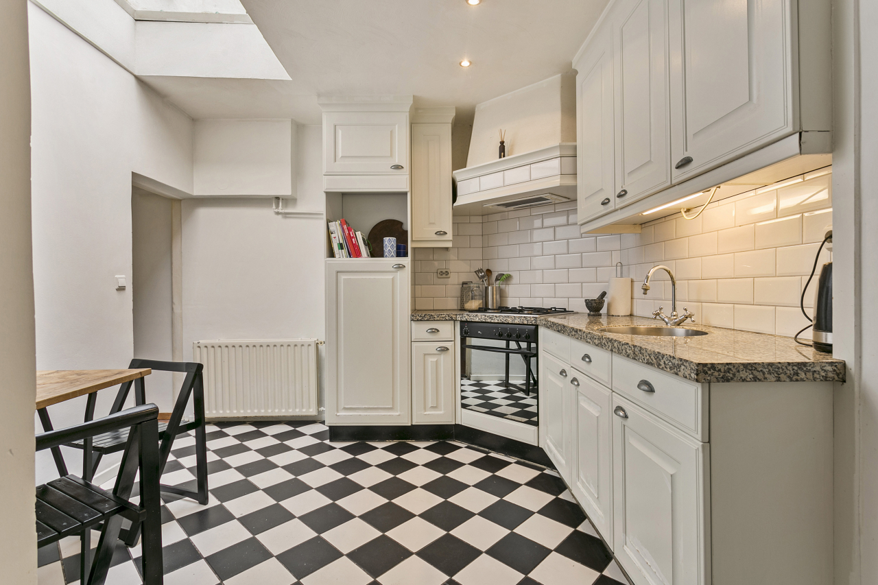 De ruime keuken in L-opstelling, is voorzien van een natuurstenen aanrechtblad met spoelbak en inbouwapparatuur zoals een 4 pits gasfornuis met oven en afzuigkap. De keuken is extra licht door de grote lichtkoepel in het plafond. In de inbouwkast is ruimte voor de wasmachine en eventueel droger.