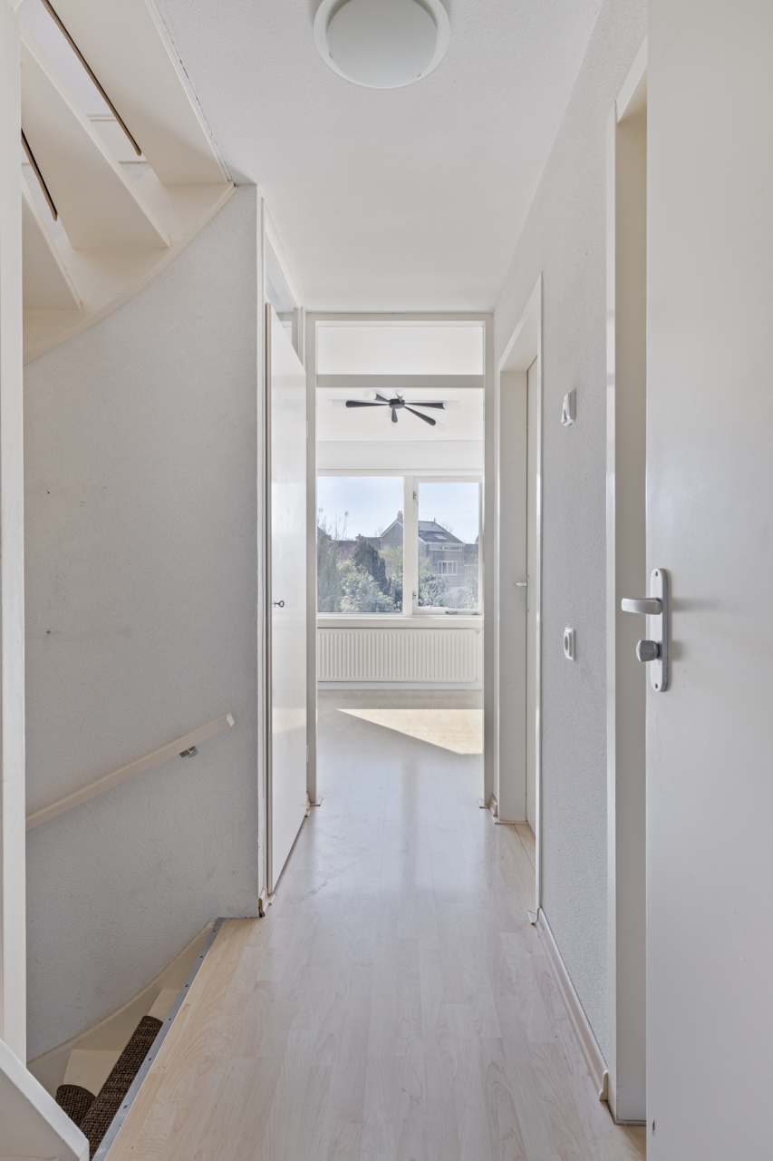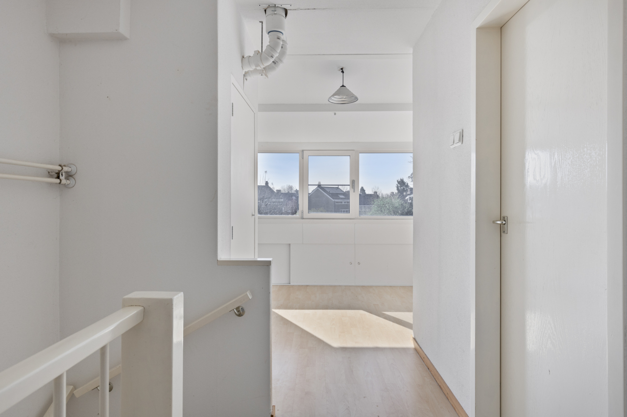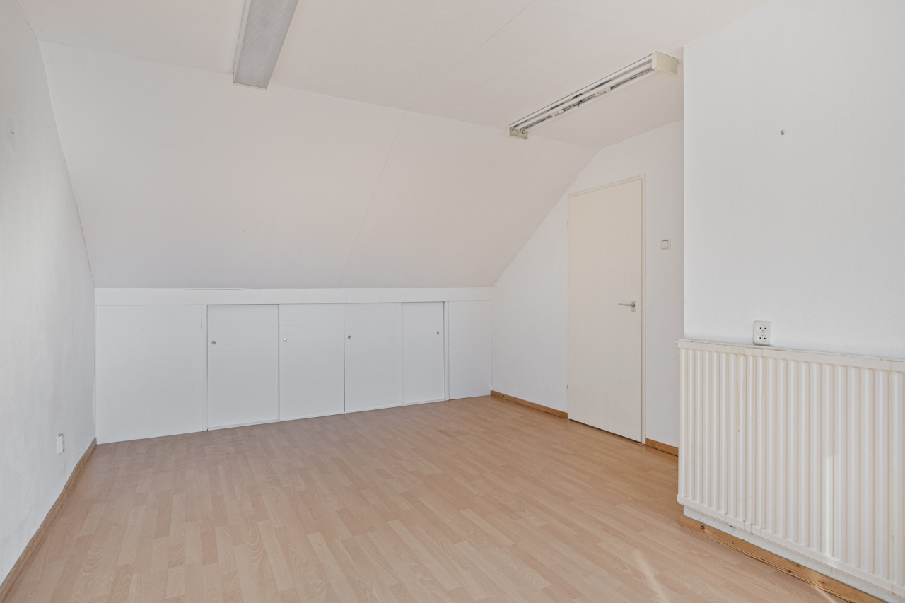 Via een vaste trap is de 2e verdieping bereikbaar met een grote voorzolder en de 4e slaapkamer. Beiden bijzonder ruim door de grote, brede dakkapel. Er is veel bergruimte achter de knieschotten. En in de inbouwkast hangt de Intergas CV HR combiketel (2021). Ook deze verdieping is voorzien van een laminaatvloer.