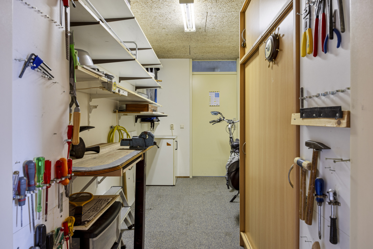 De grote inpandige berging heeft een deur naar de gezamenlijke gang naar buiten en is daardoor heel praktisch voor het plaatsen van o.a. de fietsen.