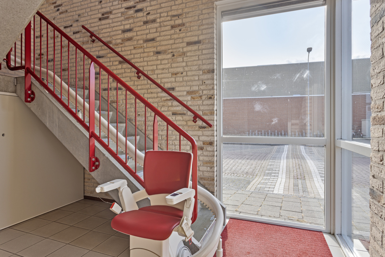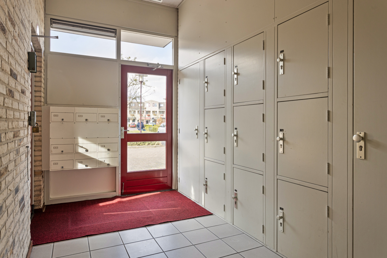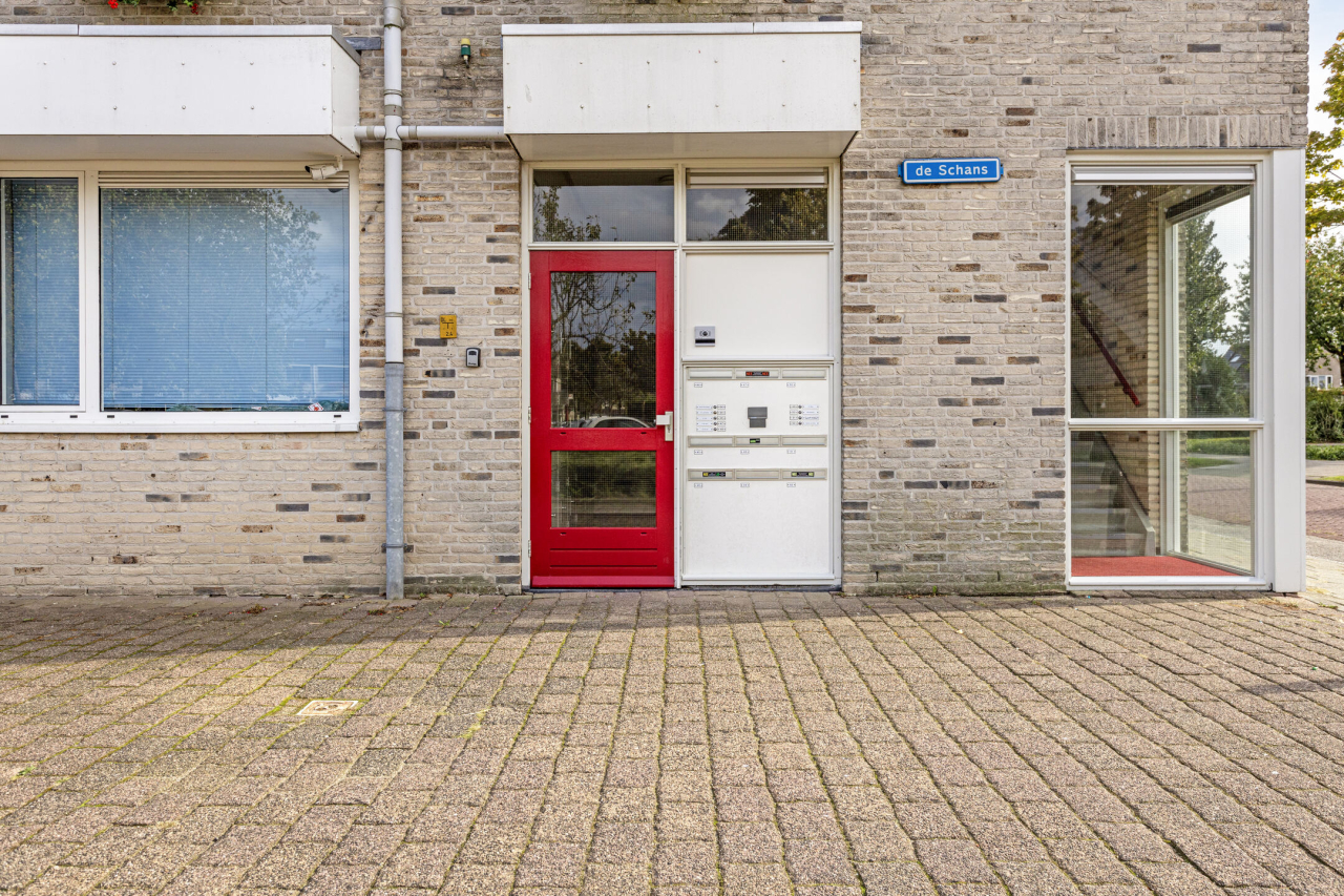 De entree van de appartementen bevindt zich aan het plein van De Schans met een grote parkeerplaats voor de deur. Via de centrale hal met de brievenbussen loop je via de trap en galerij door naar de voordeur van De Schans 50.