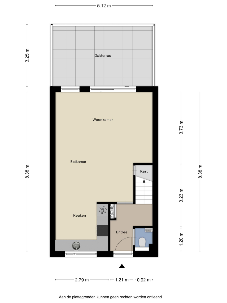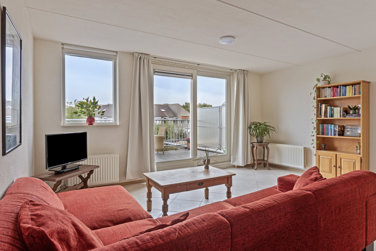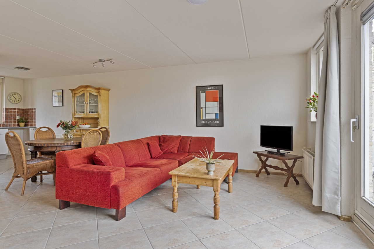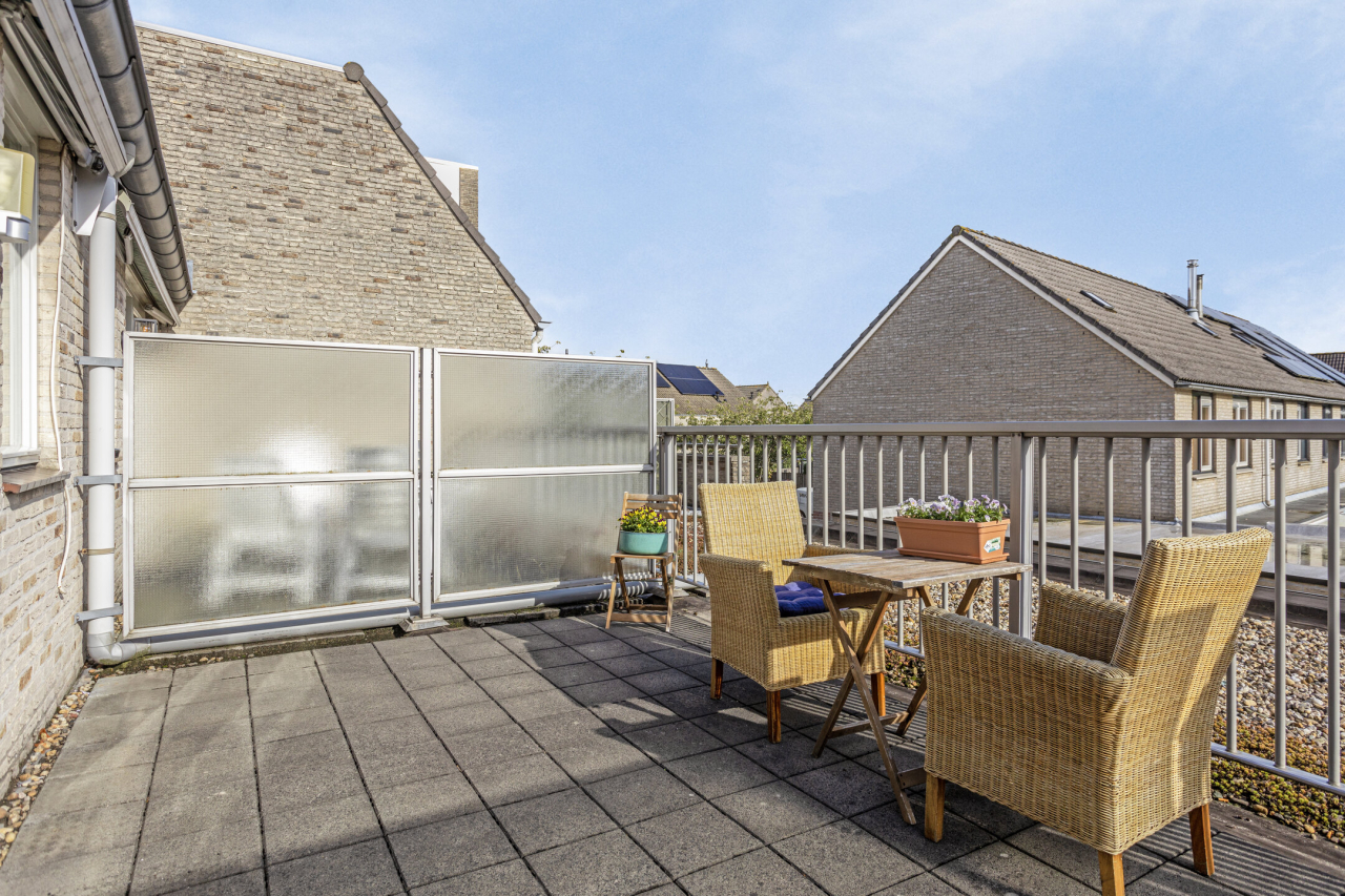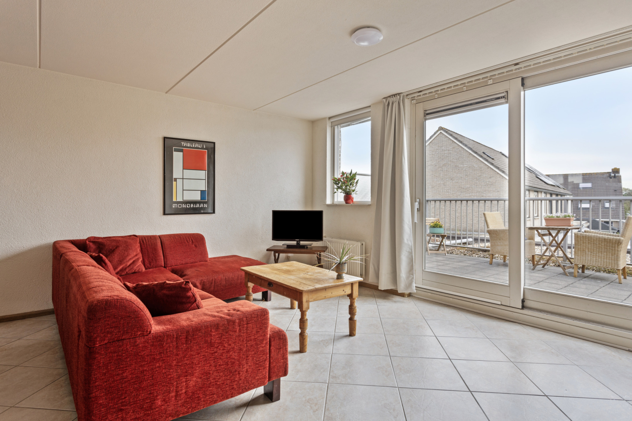 Achter de woonkamer van de maisonnette ligt een groot, zonnig dakterras op het Zuiden. Door de zonnige en beschutte ligging kun je al snel en lang heerlijk buiten zitten.