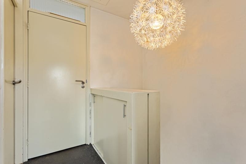 Via de lichte hal met houten parketvloer, garderobe, meterkast, trapopgang, trapkast en modern toilet zijn de keuken en woonkamer bereikbaar.