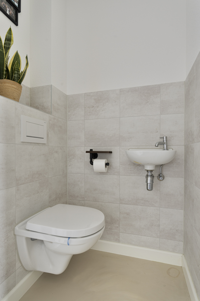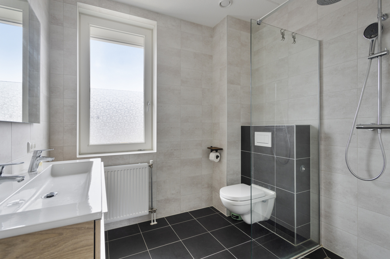 Via de trap in de hal is de 1e verdieping bereikbaar. Hier liggen aan de overloop 3 ruime slaapkamers en de moderne, complete badkamer. De volledige verdieping is voorzien van een lichte laminaat vloer.
