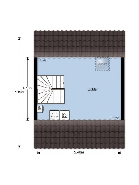 De open zolder is naar wens in te delen en heeft aan de achterzijde een groot dakraam.
