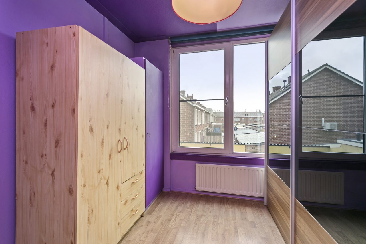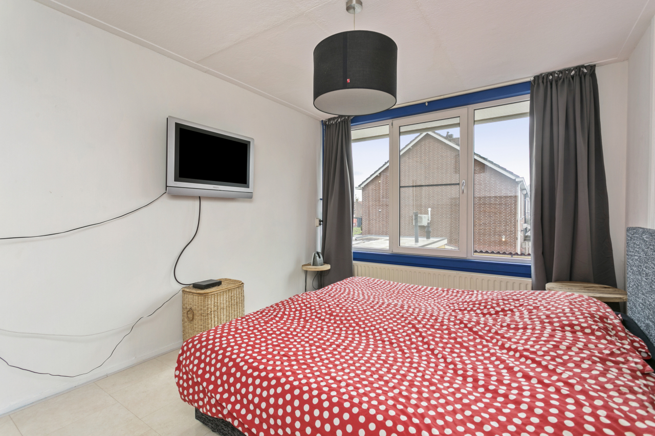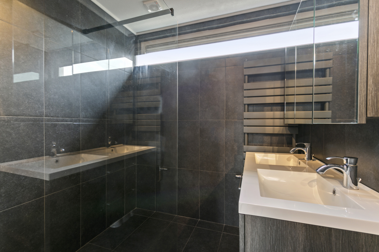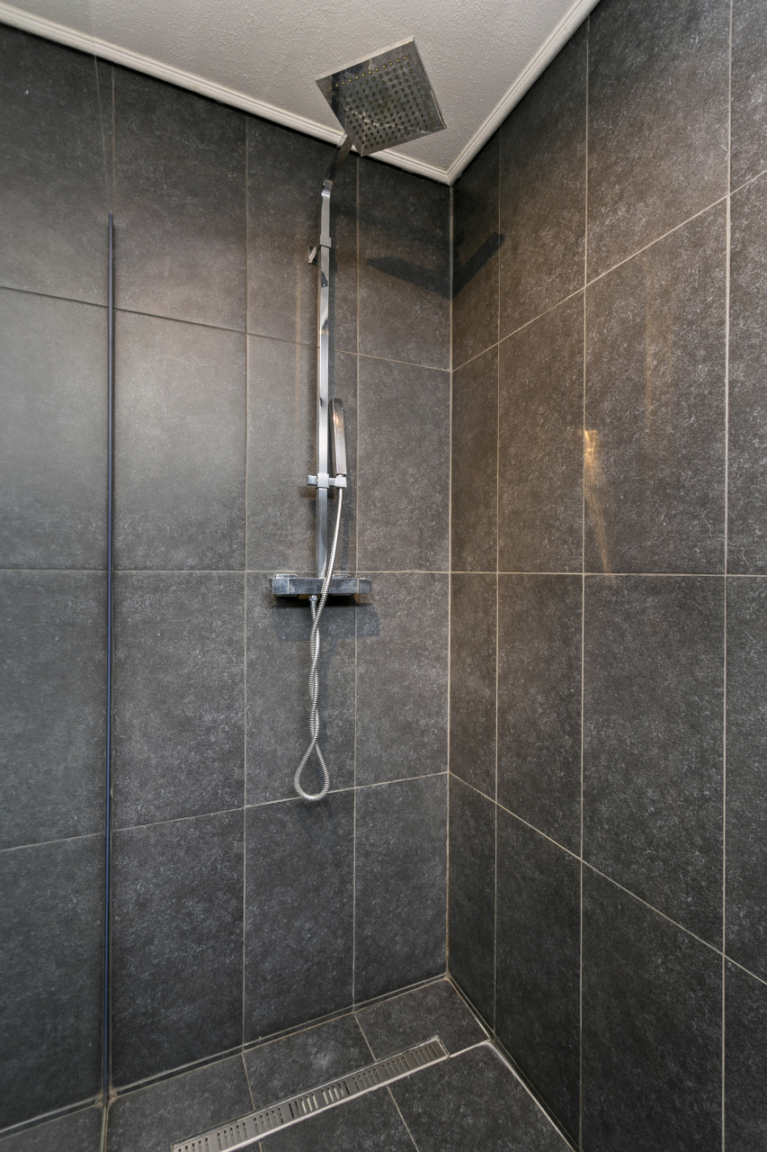 De slaapkamer aan de voorzijde ligt naast de badkamer en is ook voorzien van een laminaatvloer en grote (kunststof) ramen. De kleinste slaapkamer aan de achterzijde is op dit moment in gebruik als kastenkamer en is voorzien van een inbouwkast. De moderne, volledig betegelde badkamer aan de voorzijde is ingericht met een dubbel wastafelmeubel, een designradiator en een inloopdouche met regendouche en handdouche.