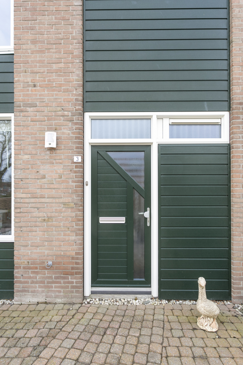 De entree van de woning is aan de voorzijde.Voor de woning ligt een voortuin met siergrind en sierbestrating en is voldoende parkeergelegenheid in de straat en om de hoek.