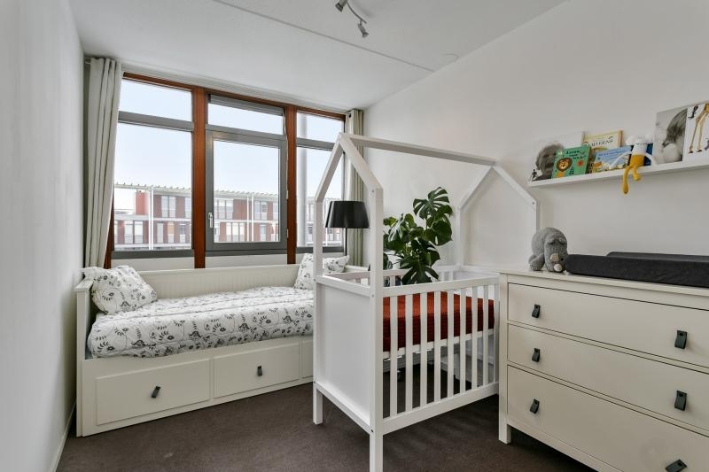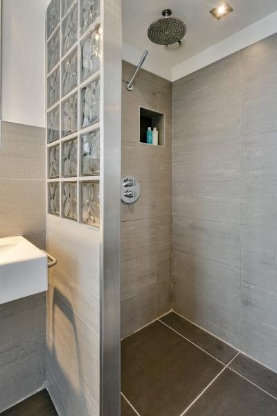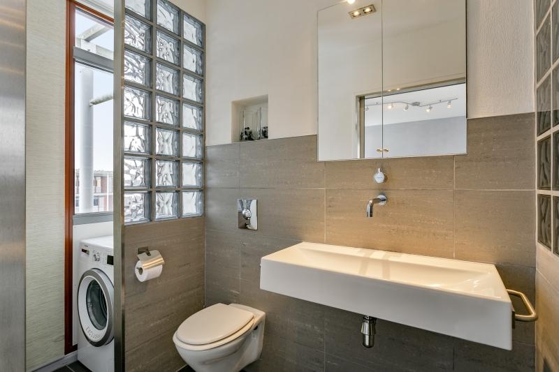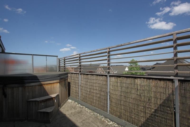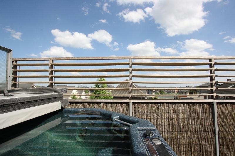Aan de voorzijde ligt de 2e badkamer met comfortabele vloerverwarming en brede wastafel, inloopdouche met regendouche en handkraan, 3e toilet en de witgoedaansluiting. Aan de achterzijde is een deur naar het dakterras met een jacuzzi en zicht op de Hertog Willemhof en Parkeiland.