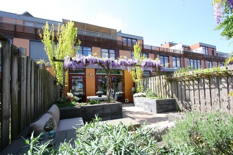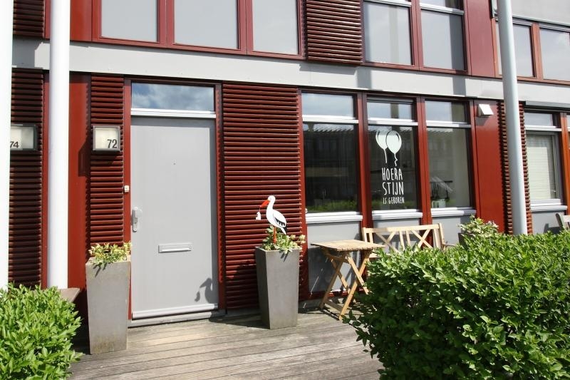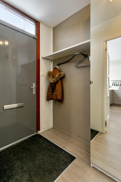 De entree van de woning is aan de voorzijde. Vanuit de hal met garderobe, meterkast en modern toilet met fonteintje zijn de woonkamer en luxe keuken bereikbaar.